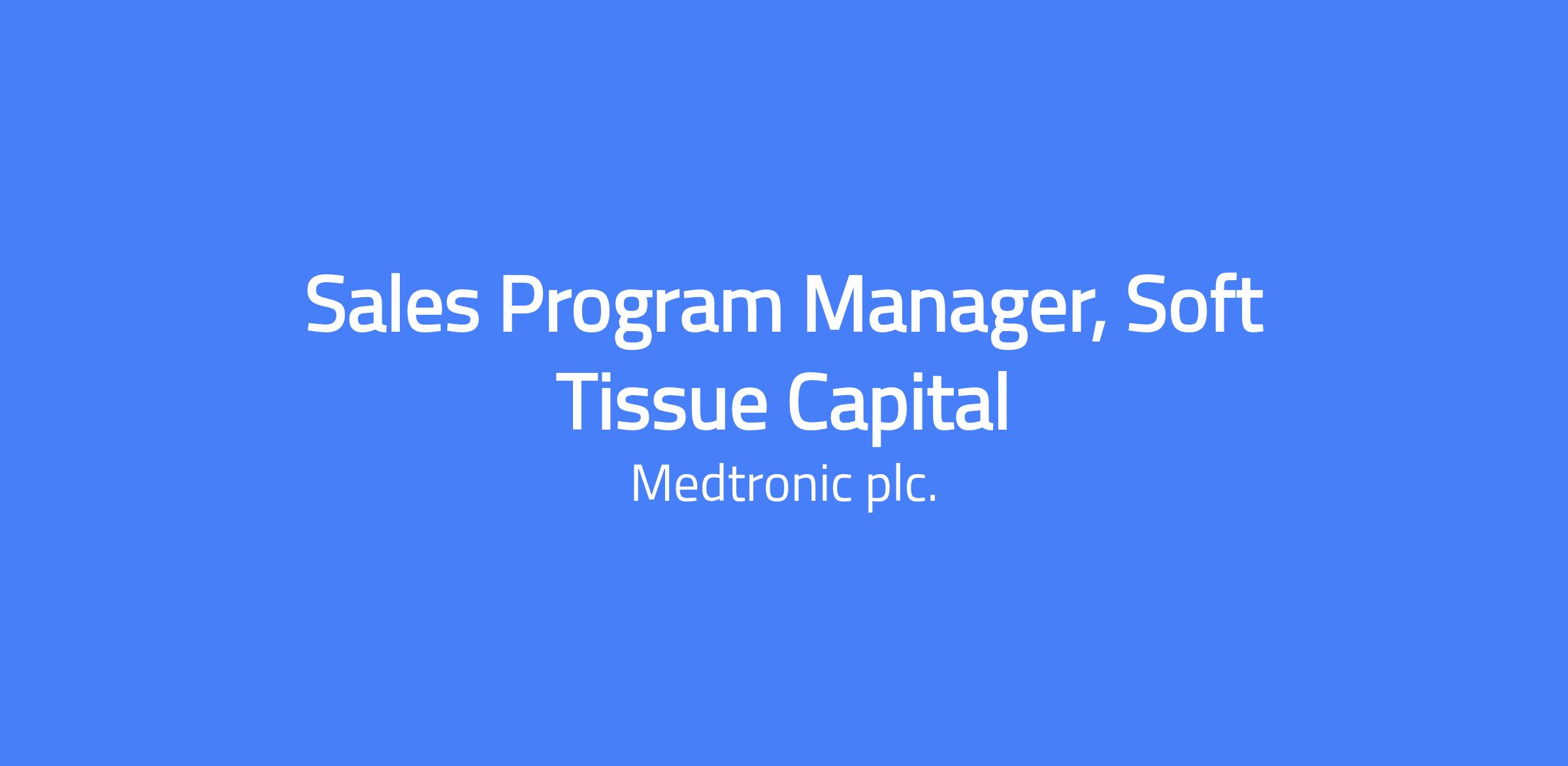 At Medtronic you can begin a life-long career of exploration and innovation, while helping champion healthcare access and equity for all. Youâll lead with purpose, breaking down barriers to innovation in a more connected, compassionate world. A Day in the Life We are seeking a Sales Program Manager to support Medtronicâs rapidly expanding Soft Tissue Capital portfolio, a critical growth engine for the ACEE Region. This role offers the opportunity to shape how capital systems are positioned, sold, and deployed across diverse markets. Candidates will join a team driving strategic execution behind a capitalâenabled growth model that is central to Medtronicâs longâterm commercial acceleration This role supports a matrix commercial environment and will involve travel to customer sites, internal workshops, and regional planning sessions. Reporting into the ACEE Capital Leader. Sales Program Manager will ensure structured oversight of capital sales execution, enabling teams to land new systems consistently and support a growing number of capitalârelated therapies. You will help ensure that the customer journey is executed with precision, predictability, and strategic alignment. Responsibilities may include the following and other duties may be assigned: Lead programmatic oversight of Soft Tissue Capital sales processes across multiple therapies Improve funnel conversion and reduce cycle times through structured sales coordination Support account targeting, upgrade strategies, and portfolio expansion initiatives Partner with commercial and T&E teams to align capital placements with market development needs Provide insights and reporting to track progress toward capital revenue objectives Enable consistent execution of the PanâMedtronic capital strategy across regions Required Knowledge and Experience: Minimum 5 years of experience in Capital Equipment Sales, program management, or commercial operations Experience coordinating crossâfunctional teams in a complex sales environment Strong analytical skills with the ability to interpret sales and market data Excellent communication and stakeholderâmanagement capabilities Familiarity with Soft Tissue technologies such as Hugo RAS, which support minimally invasive procedures Urology, Gynecology and General Surgery. Ability to travel as needed to support field teams Desirable: Experience working within surgical robotics, or prior exposure to capitalâenabled commercial models. Physical Job Requirements The above statements are intended to describe the general nature and level of work being performed by employees assigned to this position, but they are not an exhaustive list of all the required responsibilities and skills of this position.⯠Benefits & Compensation Medtronic offers a competitive Salary and flexible Benefits Package A commitment to our employees lives at the core of our values. We recognize their contributions. They share in the success they help to create. We offer a wide range of benefits, resources, and competitive compensation plans designed to support you at every career and life stage. Pay range / Rango salarial / Intervalo salarial /Fascia retributiva / Tranche de salaire / Gehaltsband / Salaribereik: Croatia: 68,800.00 EUR - 103,200.00 EUR | Czechia: 1,680,000.00 CZK - 2,520,000.00 CZK | Hungary: 20,800,000.00 HUF - 31,200,000.00 HUF | Latvia: 51,200.00 EUR - 76,800.00 EUR | Lithuania: 56,480.00 EUR - 84,720.00 EUR | Poland: 268,000.00 PLN - 402,000.00 PLN | Romania: 321,920.00 RON - 482,880.00 RON | Slovakia: 60,160.00 EUR - 90,240.00 EUR | About Medtronic We lead global healthcare technology and boldly attack the most challenging health problems facing humanity by searching out and finding solutions. Our Mission â to alleviate pain, restore health, and extend life â unites a global team of 95,000+ passionate people. We are engineers at heartâ putting ambitious ideas to work to generate real solutions for real people. From the R&D lab, to the factory floor, to the conference room, every one of us experiments, creates, builds, improves and solves. We have the talent, diverse perspectives, and guts to engineer the extraordinary. Learn more about our business, mission, and our commitment to diversity here We lead global healthcare technology and boldly attack the most challenging health problems facing humanity by searching out and finding solutions. Our Mission â to alleviate pain, restore health, and extend life â unites a global team of 95,000+ passionate people. We are engineers at heartâ putting ambitious ideas to work to generate real solutions for real people. From the R&D lab, to the factory floor, to the conference room, every one of us experiments, creates, builds, improves and solves. We have the talent, diverse perspectives, and guts to engineer the extraordinary. We change lives. Each team member, each day, helps to improve and redefine how the world treats the most pressing health conditions, from heart disease to diabetes. Our industry leadership comes from the passion and ingenuity of our people. Thatâs who we are. Working alongside one another, we use science, medicine, and a profound understanding of the human body to build extraordinary technologies that can transform lives. We build extraordinary solutions as one team. With one Medtronic Mindset defining how we work. Speed and decisiveness run through our DNA. Diverse perspectives inspire our bold answers to any challenge that comes our way. And we deliver results the right way, breakthrough after patient breakthrough. This life-changing career is yours to engineer. By bringing your ambitious ideas, unique perspective and contributions, you will⦠Build a better future, amplifying your impact on the causes that matter to you and the world Grow a career reflective of your passion and abilities Connect to a dynamic and inclusive culture that welcomes the challenge of life-long learning These commitments set our team apart from the rest: Experiences