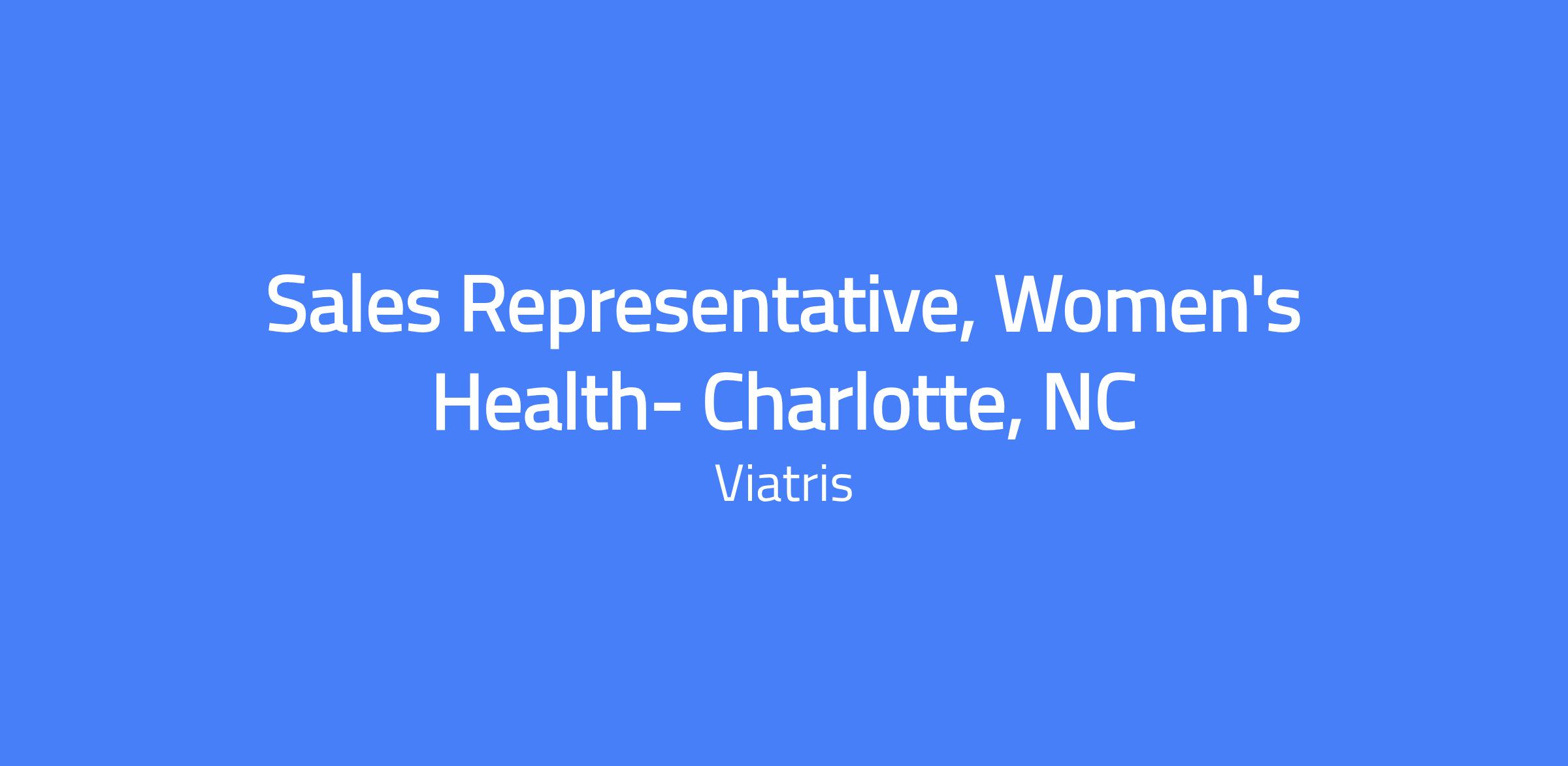 Sales Representative, Women's Health in Charlotte, NC responsible for developing territory business plans, delivering targeted sales presentations, and achieving sales goals within ethical and regulatory guidelines. Build proactive relationships with prescribers, pharmacists, and healthcare teams; plan and execute calls; and continually improve product knowledge and selling skills. This role requires travel within the territory and residence within the geography.