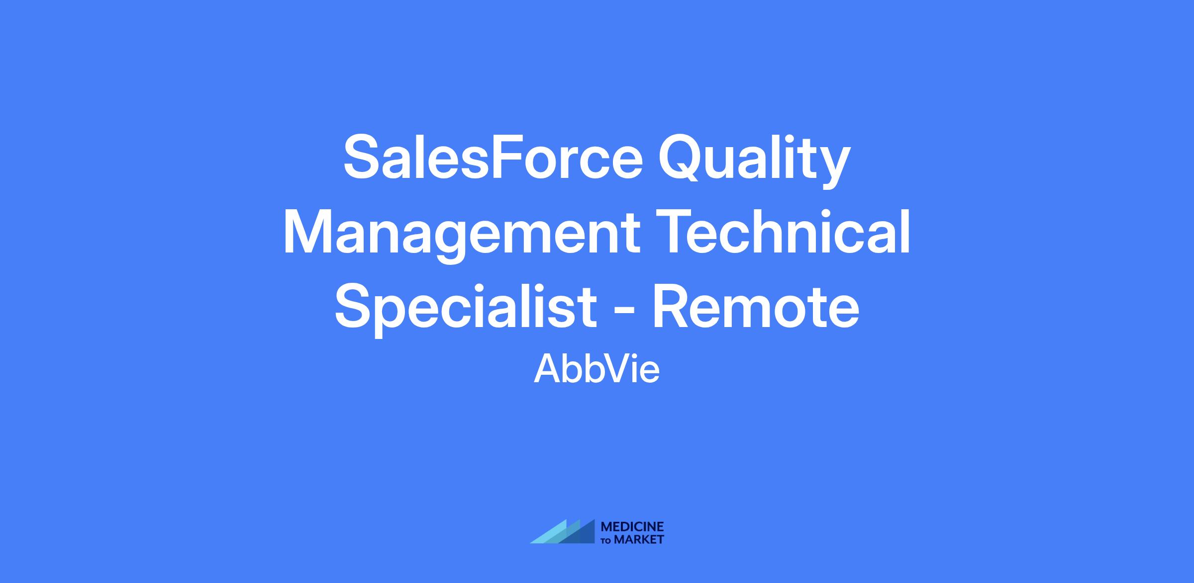SalesForce Quality Management Technical Specialist – Remote. System Owner responsible for overall delivery including technical direction, adherence to deliverables, and supporting applications and systems across multiple tech stacks and architectures, with a focus on Salesforce within a SaaS environment.