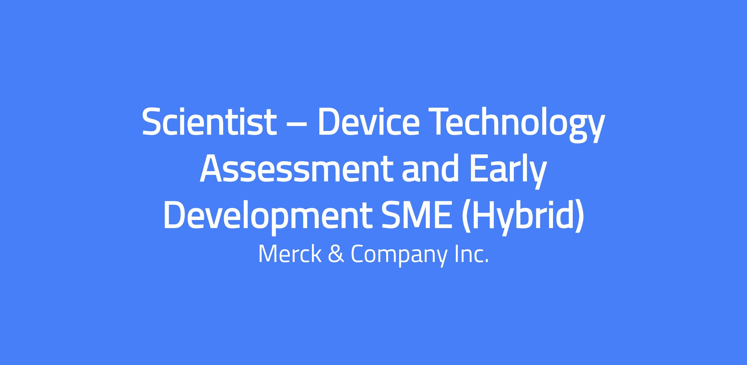 Scientist – Device Technology Assessment and Early Development SME (Hybrid)