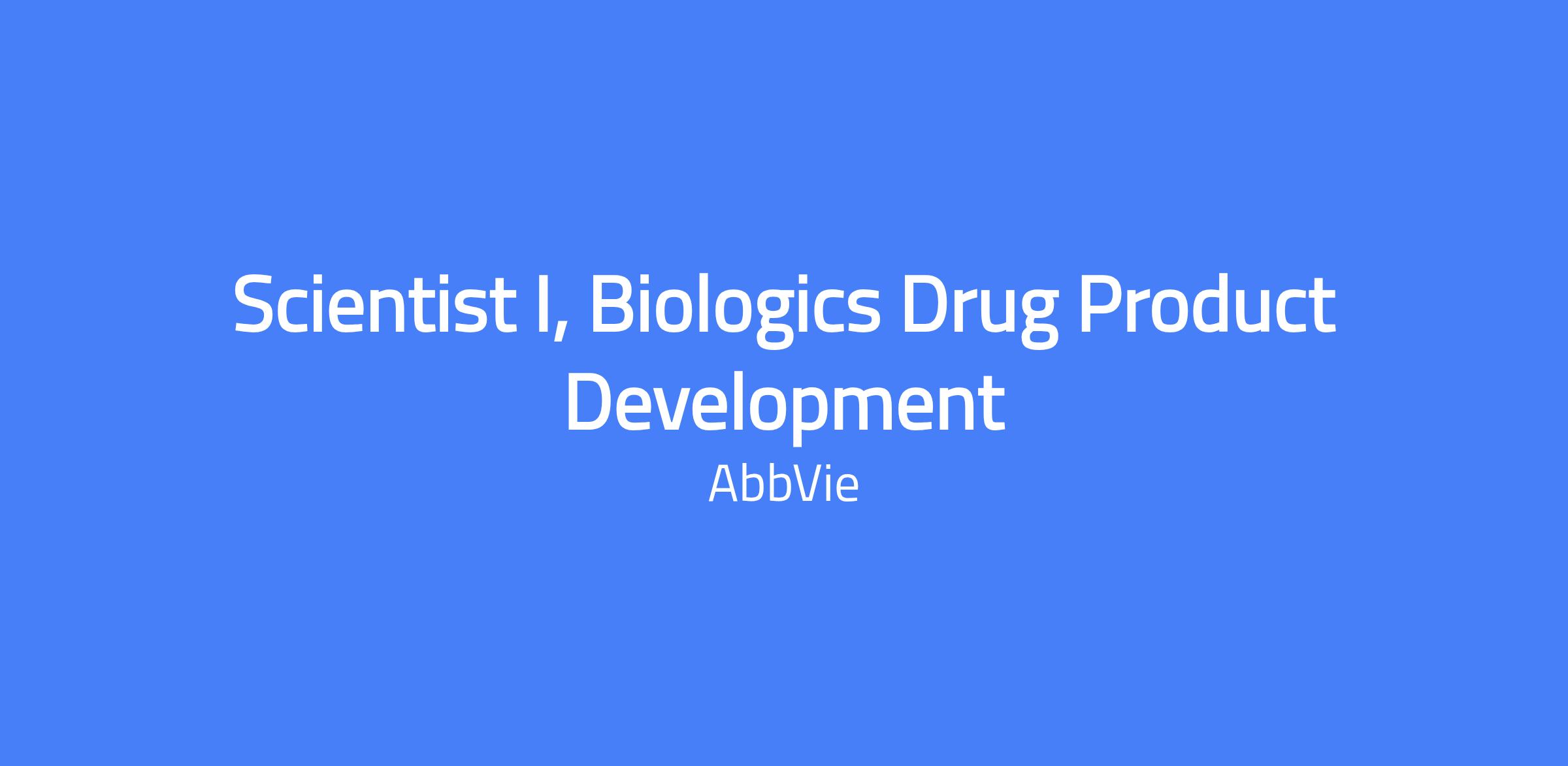 Biologics Drug Product Development (Bio DPD) is a global organization responsible for drug product formulation and process development for biologics and genetic medicines. AbbVie seeks a Scientist I in North Chicago, IL with experience in Biologics Formulation and Drug Product Development to contribute to developing and delivering biologics drug products.