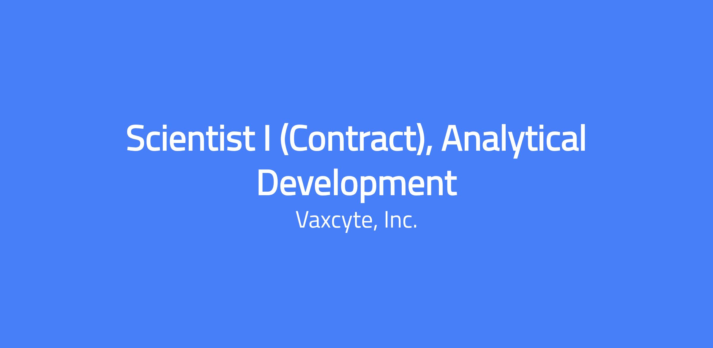 Vaxcyte has an exciting opportunity for an energetic and talented individual to join our Analytical Development team. The Scientist I, Analytical Development, is responsible for executing analytical testing and contributing to analytical method development activities for biologics/vaccine development programs.Â