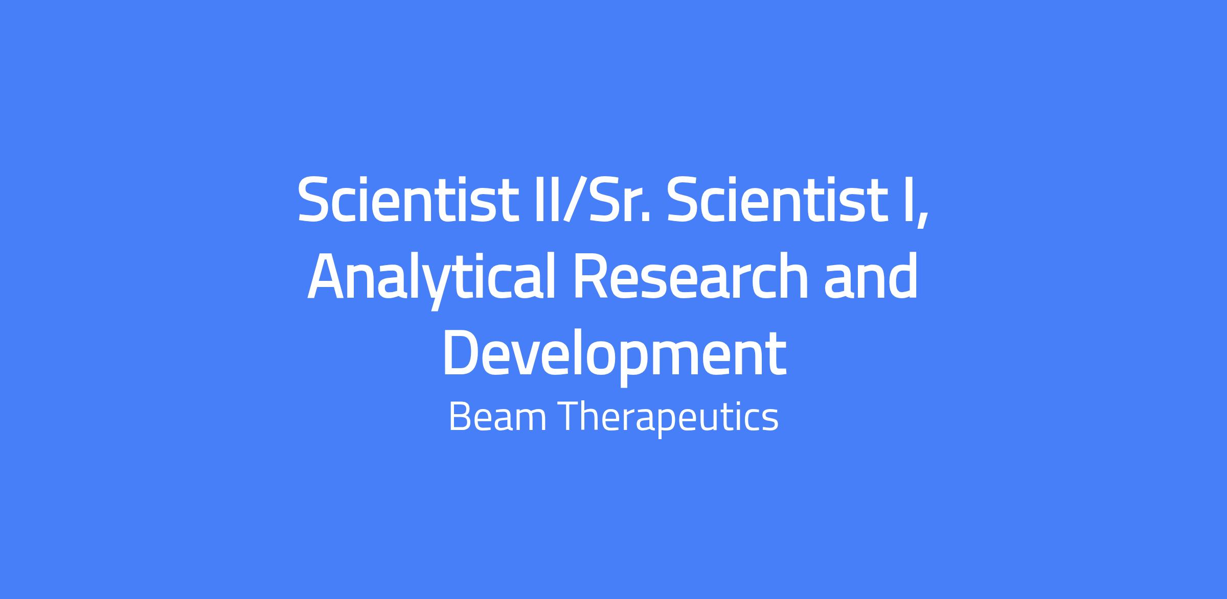 - Scientist II / Senior Scientist I with hands-on experience in analytical method development, optimization, qualification, and transfer to support release, stability, and characterization of cell and gene therapy products. Primarily supports in vivo lipid nanoparticle (LNP) programs; laboratory-based.