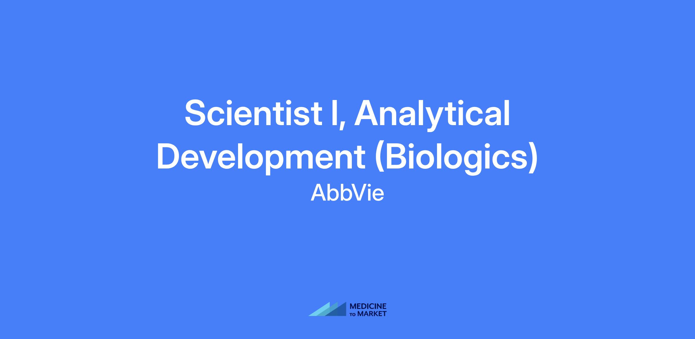 Scientist I, Analytical Development (Biologics) role within AbbVie Biologics ARD focusing on early development through proof-of-concept, method development/optimization/validation, and non-GxP/GxP testing of clinical supplies to support analytical deliverables and collaboration with cross-functional teams.