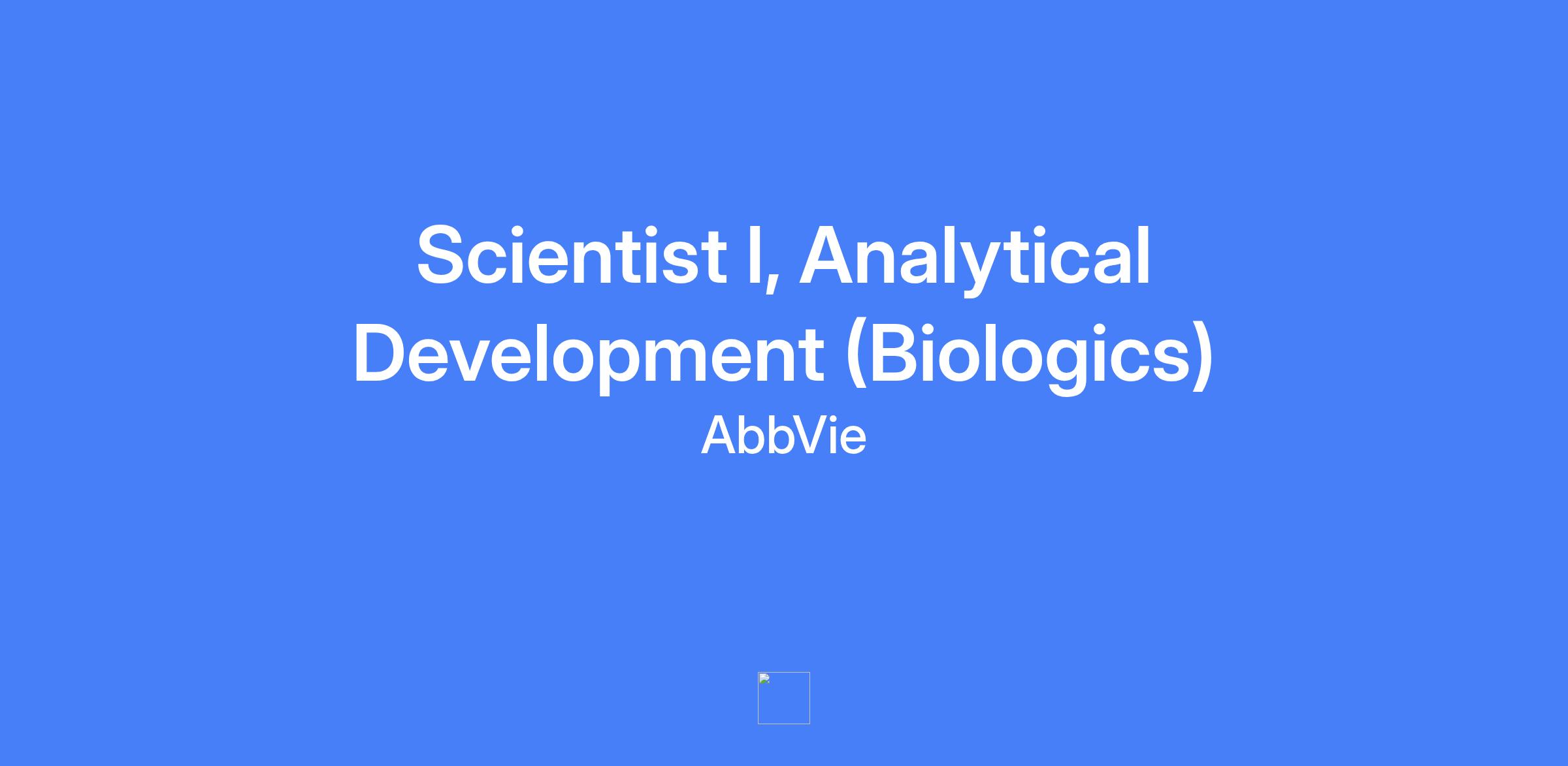 Scientist I, Analytical Development (Biologics) role within AbbVie Biologics ARD focusing on early development through proof-of-concept, method development/optimization/validation, and non-GxP/GxP testing of clinical supplies to support analytical deliverables and collaboration with cross-functional teams.