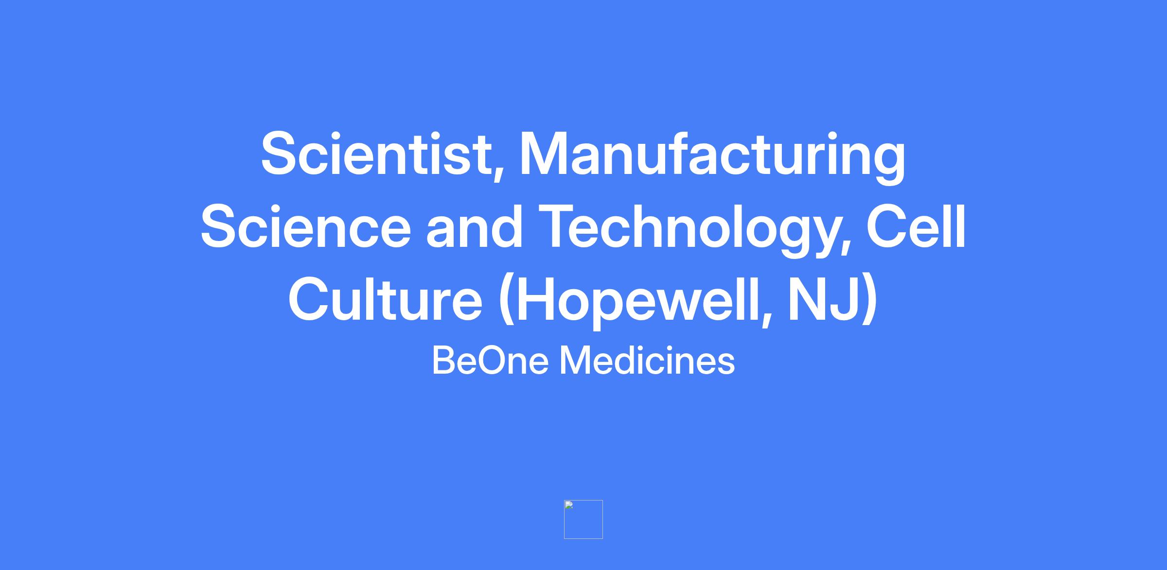 Scientist, Manufacturing Science and Technology, Cell Culture (Hopewell, NJ). This role supports analysis, design and execution of cell culture development activities, tech transfer, process improvements, and collaboration with cross-functional teams in a manufacturing science environment focused on drug substance manufacturing.