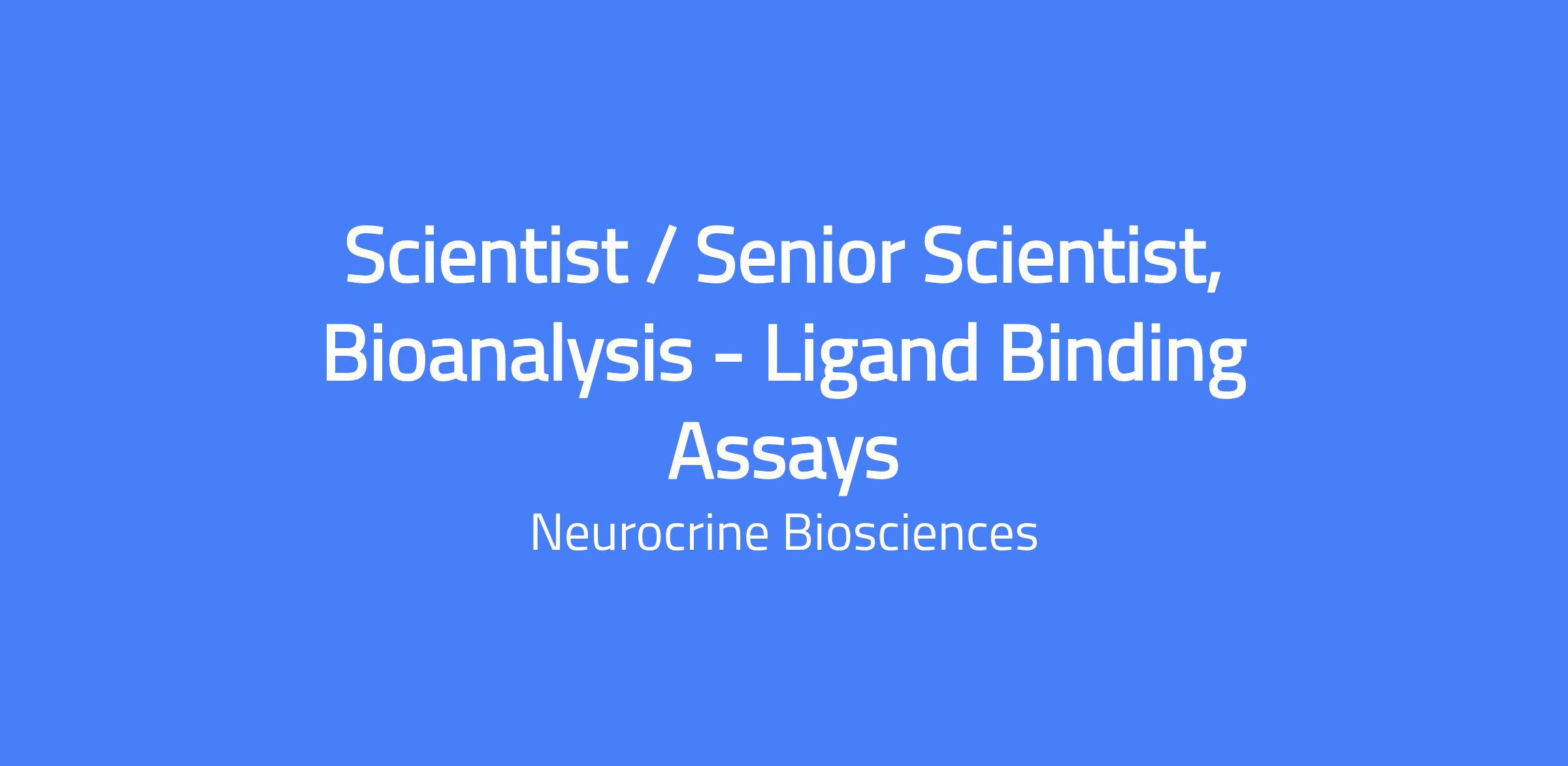 - Scientist or Senior Scientist (Bioanalysis) supporting early-stage biologics drug development programs.
