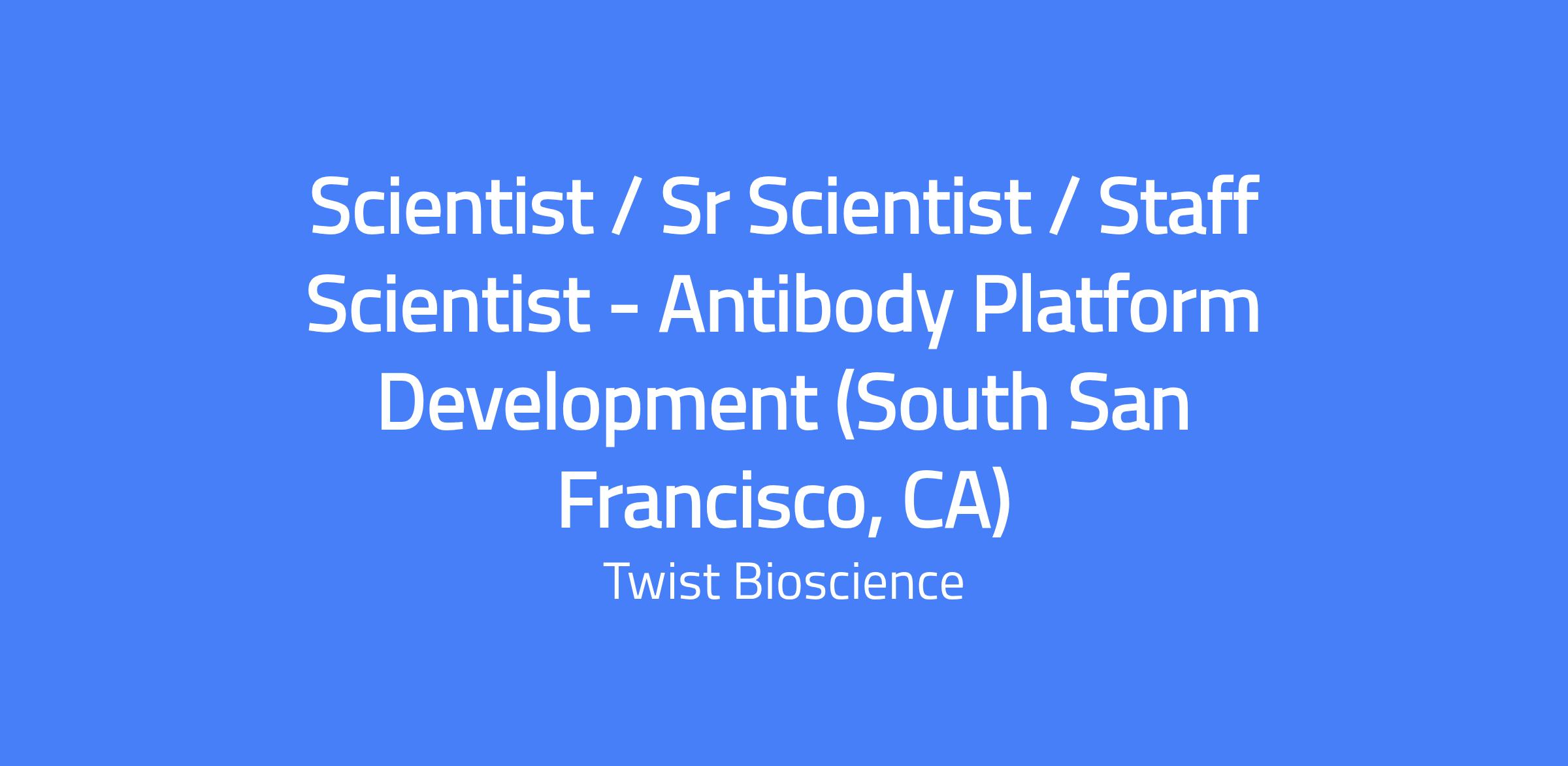Scientist / Sr Scientist / Staff Scientist - Antibody Platform Development (South San Francisco, CA)