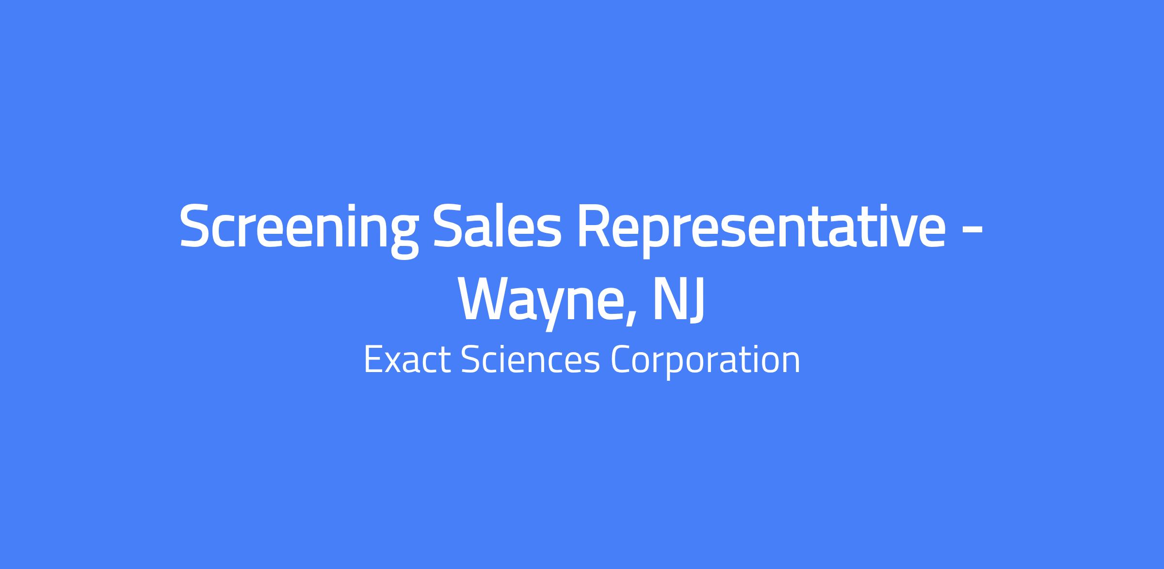 Help us change lives At Exact Sciences, weâre helping change how the world prevents, detects and guides treatment for cancer. We give patients and clinicians the clarity needed to make confident decisions when they matter most. Join our team to find a purpose-driven career, an inclusive culture, and robust benefits to support your life while youâre working to help others. Position Overview At Exact Sciences, we are cancer fighters. We are united by our mission to change lives by providing earlier, smarter answers. Through advances in cancer detection and treatment guidance, we will help eradicate the disease and the suffering it causes. A Screening Solutions Specialist (SSS) is a front-line position in the fight against cancer. The SSS will drive product growth of Cologuard in medical practices to meet sales goals within the assigned geography and deliver diagnostic solutions by establishing the importance of Colorectal Cancer (CRC) diseases and screening. This role aims to enhance customer relationships to drive growth and revenue while enhancing the system of care and deliver improved patient outcomes through integration of Exact Scienceâs solutions. We are Exact Sciences, come join the fight. This position is field based. Essential Duties Include, but are not limited to, the following: Generate deep insight into local healthcare ecosystems and market landscape in order to identify opportunities to enhance the system of care and deliver improved patient outcomes through integration of Exact Scienceâs solutions. Analyze the treatment journey across the local system of care in order to identify account opportunities to work with HCPs to improve clinical decision making and deliver better patient and population health outcomes in the context of EXAS current and future pipelines. Build a network of relationships within accounts in order to gain insight into system, customer and patient unmet needs, including clinical stakeholders and administrators, and diligently captures information on customer interactions using the Customer Relationship Management (CRM) database, including point of contact (POC) information, sales call activities, market intelligence, funnel development and other data points. Synthesize data from a range of formal and informal sources to understand the evolving and dynamic local care system, leveraging available tools and resources such as Engage (CRM), Excel, Tableau and available research to make data-driven decisions on account potential and opportunities in order to focus effort, including working across the Market team. Develop and implement business and account plans to increase the visibility and awareness of the Companyâs products and maximize opportunities and sales growth. Create business and account plans based on opportunities to drive acceptance of Cologuard and other Exact Sciences solutions to enhance clinical decision making and the effectiveness of the system of care. Lead the implementation of these business and customer plans to devise and implement customer-specific pre-and post-call engagement approaches that evaluate and address customer needs, in collaboration with a range of internal stakeholders including Screening Advocate (SA), Medical Affairs and Marketing. Inform, educate and enable target physician and stakeholder groups about Exact Sciences products and value propositions to equip them to make informed decisions about treatment choices and patient resources and highlight the importance of screening to the customer, drawing on approved clinical studies and marketing aids. Proactively drives business growth by focusing on customers with highest potential and proactively initiating connections to uncover unmet needs and opportunities. Seeks regular feedback from customers about their experience, service, satisfaction and perceived value of working with Exact Sciences. Leads the successful implementation of account plans through collaboration and coordination with key internal stakeholders to develop and execute strategies, enhance customers satisfaction, improve patient outcomes and business opportunities for Exact Sciences. Ensures execution of targeted tactics to deliver business goals in coordination and orchestration with a wider range of internal cross-functional stakeholders, including Account Managers, Area Manager, Marketing, Sales Operations and Internal Sales Support. Communicates a clear and compelling description of customer needs and opportunities to internal stakeholders in order to mobilize resources and shape solutions to address current and future customer needs. Ensures that the team conducts business to the highest ethical and professional standards, consistent with Exact Sciences guidelines and policies and regulatory requirements and upholding the company mission and value through accountability, innovation, integrity, quality and teamwork. Strong verbal and written communication skills including strong questioning and listening skills. Confident, professional, and creditable presence. Strong presentation skills: ability to effectively convey concepts in a clear, concise and professional manner through telephone and face-to-face interactions. Excellent interpersonal, time management and organizational skills. Uphold company mission and values through accountability, innovation, integrity, quality, and teamwork. Support and comply with the companyâs Quality Management System policies and procedures. Maintain regular and reliable attendance. Ability to act with an inclusion mindset and model these behaviors for the organization. Ability to work designated schedule. Ability to work nights and/or weekends, as needed. Ability to work on a mobile device, tablet, or in front of a computer screen and/or perform typing for approximately 90% of a typical working day. Ability to work on a computer and phone simultaneously. Ability to travel locally on a daily basis, and at times, overnight travel may be required based on the 