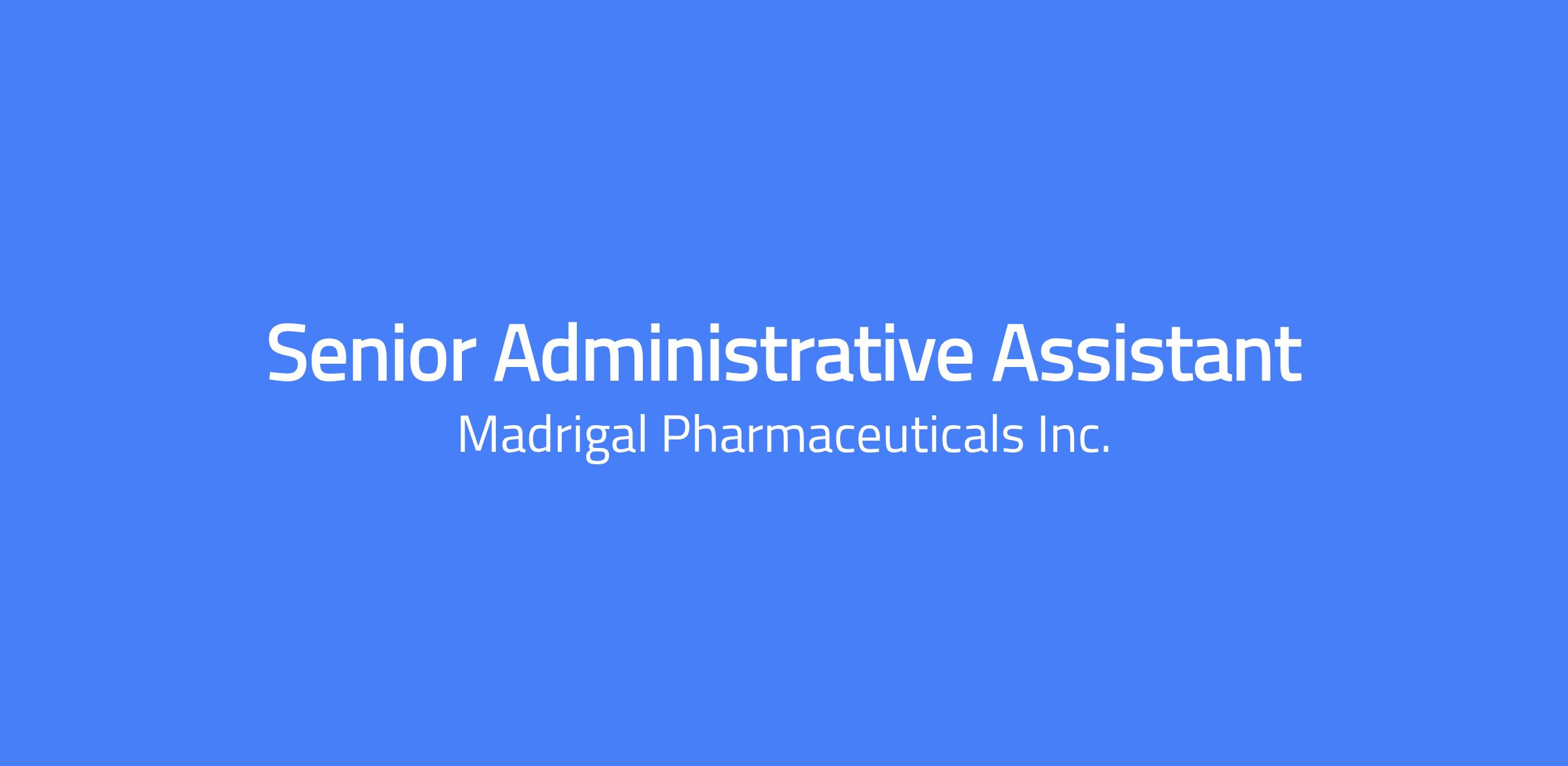 Madrigal is a biopharmaceutical company focused on delivering novel therapeutics for metabolic dysfunction-associated steatohepatitis (MASH), a serious liver disease that can progress to cirrhosis, liver failure, need for liver transplantation and premature mortality. Every member of our Madrigal team is connected by our shared purpose: leading the fight against MASH. Madrigal’s medication, Rezdiffra (resmetirom), is a once-daily, oral, liver-directed THR-β agonist designed to target key underlying causes of MASH. Rezdiffra is the first and only medication approved by both the FDA and European Commission for the treatment of MASH with moderate to advanced fibrosis (F2 to F3). An ongoing Phase 3 outcomes trial is evaluating Rezdiffra for the treatment of compensated MASH cirrhosis (F4c). Our success is driven by our people. We are building a dynamic, inclusive, and high-performing culture that values scientific excellence, operational rigor, and collaboration. To support our continued growth, we are strengthening our workforce strategy to ensure we have the right talent, at the right time, in the right way. Position Summary We are seeking a proactive, highly organized Senior Administrative Assistant to support key business operations, day to day communications, and team coordination activities. This role requires a strong blend of traditional administrative expertise (calendar, travel, and expense support) along with project management, team collaboration, and event planning skills. The ideal candidate will demonstrate sound judgment, discretion, and an ability to operate independently in a dynamic, fast-paced environment. Key Responsibilities Manage complex calendars, prioritize and schedule meetings (internal and external), and anticipate scheduling needs across time zones. Coordinate domestic and international travel arrangements and prepare expense reports (using Concur). Serve as an operational extension of the team, helping to manage communications, ensure alignment around key activities, and support execution across the span of delegation. Support internal communications and team collaboration by capturing input and turning team-building or planning discussions into tangible outputs and action steps. Assist in coordinating and planning cross functional team meetings, workshops, and events—including offsite logistics, venue selection, agendas, and follow-ups. Maintain department files, records, and shared resources with accuracy and confidentiality. Monitor and reinforce adherence to internal processes, policies, and key deadlines. Collaborate with other administrative staff to ensure continuity, support cross-functional efforts, and drive cohesion across departments. Prepare, edit, and distribute presentations, spreadsheets, memos, and meeting notes as needed. Provide support for small-scale projects as assigned, including status tracking and stakeholder coordination. Qualifications Associate degree preferred 6–8 years of administrative support experience in a corporate environment, preferably in a life sciences setting. Demonstrated experience managing executive calendars, travel arrangements, and expense reports. Proficiency in Microsoft Office Suite (Outlook, Teams, Word, Excel, PowerPoint); experience with Concur strongly preferred. Excellent written and verbal communication skills; able to interact professionally with internal and external stakeholders. Strong organizational and project coordination skills, with a proven ability to manage multiple tasks simultaneously. Continuous learning mindset Discretion, sound judgment, and the ability to maintain confidentiality are essential. Collaborative, team-oriented with a proactive, adaptive and solutions oriented approach. Willingness to travel occasionally for offsite meetings and events. This role will require 3 days per week onsite in Conshohocken, PA. Madrigal’s Total Rewards strategy is based on a biotech industry peer group comparator and is inclusive of base pay, bonus and equity. Our equity offers meaningful opportunity allowing our employees to share in the success they help create. By aligning individual and company performance, we empower employees to think like owners, giving them a stake in the organization. All employees receive equity, which we believe reinforces our ownership culture. Base salary is determined by several factors including the candidate’s qualifications, skills, education, experience, business needs and market demands. As of the date of this posting, a good faith estimate of the current pay scale for this position, applicable to all candidates, is $91,000 - $111,000 per year. We comply with all applicable minimum wage laws. All full-time employees receive equity, which reinforces our ownership culture and offers meaningful opportunity for our employees to share in the success they help create. By aligning individual and company performance, we empower employees to think like owners, giving them a stake in the organization. Full-time employees are also eligible for comprehensive benefits, including flexible paid time off, medical, dental, vision and life/disability insurance, and 401(k) offerings (i.e., traditional, Roth, and employer match) in accordance with applicable plans. We also offer additional voluntary benefits like supplemental life insurance, legal services, and other offerings. In addition, we offer mental health benefits through our Employee Assistance Program for employees and their family. The company also provides other benefits in accordance with applicable federal, state, and local laws. We are committed to providing reasonable accommodations for individuals with disabilities throughout the hiring process. If you need assistance, please contact HR@madrigalpharma.com. Madrigal is an Equal Opportunity Employer. All employment is decided on the basis of qualifications, merit, and business need. Applicants will receive consideration for employment without regard to race, eth