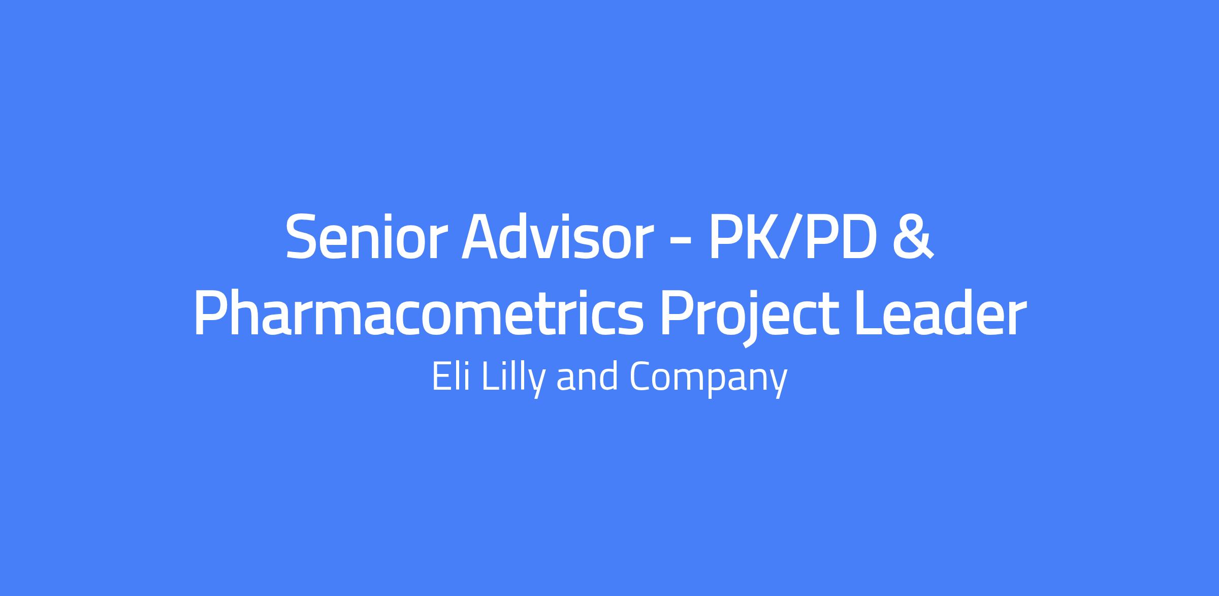 Senior Advisor - PK/PD & Pharmacometrics Project Leader applies PK/PD, pharmacometrics, and clinical pharmacology expertise to project teams to support optimal dosing and development strategies across Phase I–III. The role translates preclinical data to clinical settings using model-informed drug discovery and development (MIDD) approaches, leads PK/PD activities within programs, and mentors colleagues. This position is based in Indianapolis, IN, with opportunities to contribute to publications and scientific leadership.