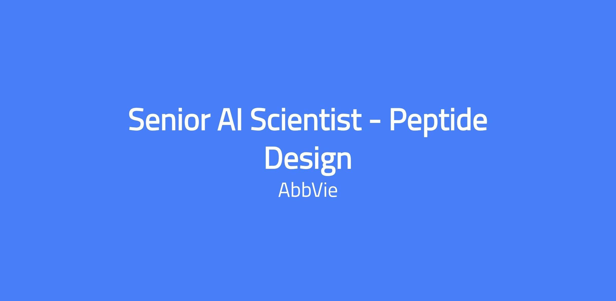 Senior AI Scientist to join AbbVie's Madison Peptide Therapeutics team. You will drive adoption and development of generative AI methods to accelerate peptide drug discovery, leveraging a proprietary peptide synthesis platform capable of synthesizing millions of unique peptide sequences with canonical and non-canonical amino acids. The successful candidate will identify and develop novel algorithms and pipelines and collaborate closely with both computational and experimental scientists to guide and optimize AI-enabled hit generation strategies.