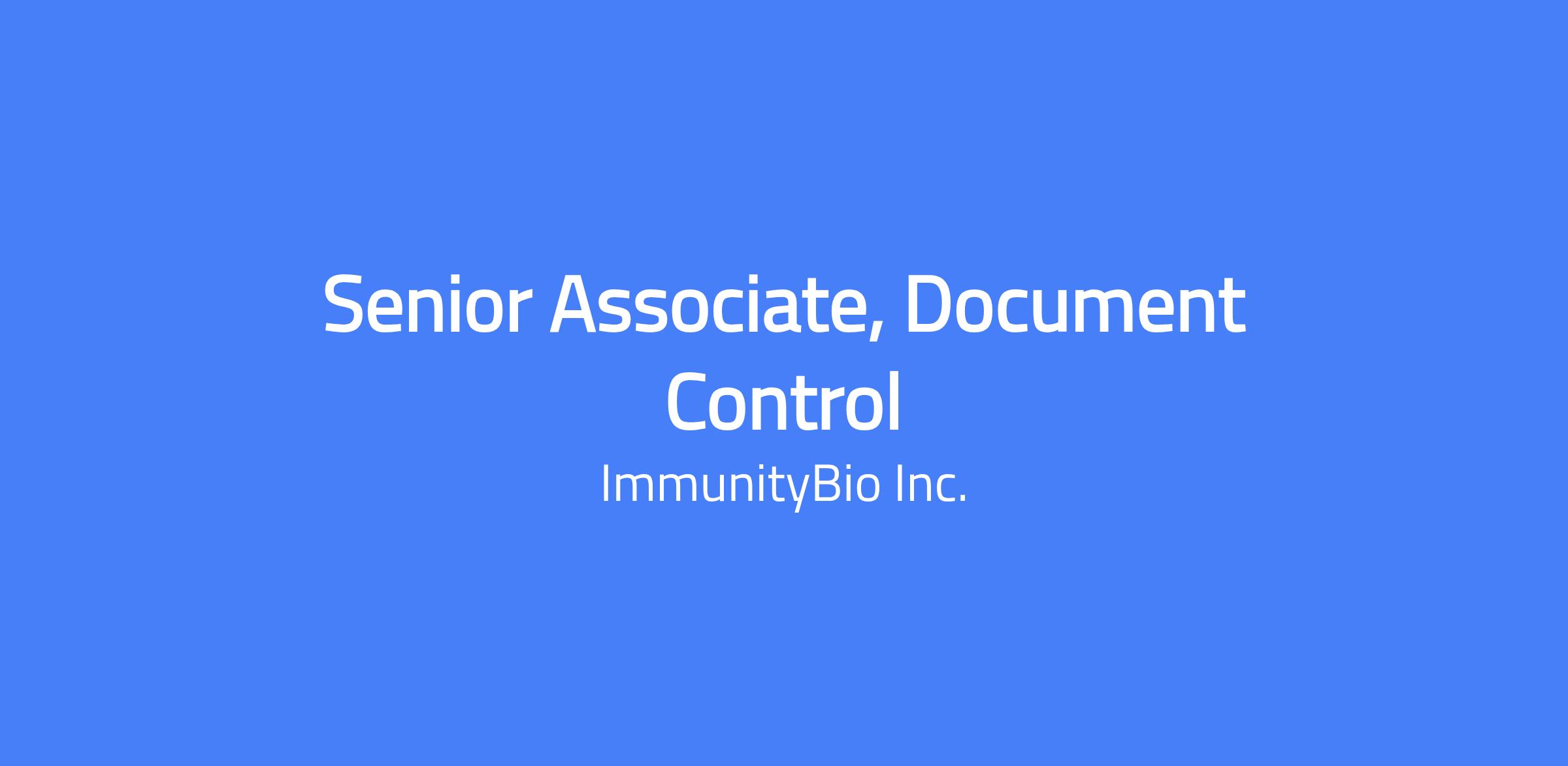 Company Overview ImmunityBio, Inc. (NASDAQ: IBRX) is a commercial-stage biotechnology company developing cell and immunotherapy products that are designed to help strengthen each patient’s natural immune system, potentially enabling it to outsmart the disease and eliminate cancerous or infected cells. We envision a day when we no longer fear cancer, but can conquer it, thanks to the biological wonder that is the human immune system. Our scientists are working to develop novel therapies that harness that inherent power by amplifying both branches of the immune system, attacking cancerous or infected cells today while building immunological memory for tomorrow. The goal: to reprogram the patient’s immune system and treat the host rather than just the disease. Why ImmunityBio? • ImmunityBio is developing cutting-edge technology with the goal to transform the lives of patients with cancer and develop next-generation therapies and vaccines that complement, harness and amplify the immune system to defeat cancers and infectious diseases. • Opportunity to join a publicly traded biopharmaceutical company with headquarters in Southern California. • Work with a collaborative team with the ability to work across different areas of the company. • Ability to join a growing company with professional development opportunities. Position Summary The Senior Associate, Document Control role is responsible for coordinating activities related to the electronic and physical record documentation, training processes and systems and administering associated SOPs and business processes that ensure compliance with established company and industry requirements. Essential Functions Support the implementation and administration of electronic and physical record documentation processes and systems, including: Support development of procedures, work instructions, training materials/job aides, etc., describing electronic documentation system processes and use of the electronic Document Management System. Serve as the document control reviewer and/or approver on documentation managed through the electronic Document Management System, ensuring documents and records comply with established procedures and requirements, appropriate functional area representatives are involved in the review and/or approval and training information is accurate, complete and appropriate training groups are assigned. Create, maintain, and distribute electronic document templates supporting controlled document, validation, and/or study related document development. Conduct training on use of document control templates, as needed. Ensure appropriate representatives receive notification and ensure proper distribution of approved and/or effective documents. Support in the implementation and execution of the official controlled document process through creation of official controlled copy binders to guarantee current documents may be accessed and retrieved, as needed, and ensuring appropriate representatives receive notification upon Controlled Document implementation, retirement, or obsoletion. Distribute official documents to internal and external customers, as needed. Proactively monitor and execute the document periodic review process, coordinating with appropriate functional area representatives to ensure documents are reviewed within the specified timeframe. Receive and archive/file executed quality related documentation and records (physical records) in a secure documentation area. Control access to documentation area(s) and track document and record submission and removal activities. Create, assign numbers to, and track the issuance, closure, and reconciliation of logbooks and laboratory notebooks, as needed. Maintain quality logbooks, as required, in accordance with appropriate procedures. Provide document system support and guidance to internal customers and expertise on document content and effective document design to authors. Support administration of GxP Training management processes and systems, including: Create electronic training profiles for new employees in accordance with submitted training requests, or as instructed by management and/or appropriate functional area representatives. May conduct other administration activities for the GxP Training department, as assigned. Identify opportunities for enhancing the overall Quality - Document Control program, process, and system, and seek input on proposed strategies and/or processes to facilitate continuous program. Support internal and external audit and inspection activities through retrieval and provision of requested documents and data in a timely manner. Perform other related duties, as assigned. Education & Experience High school diploma or equivalent with 5+ years of relevant document control experience required; or Bachelor’s Degree with 3+ years of relevant document control experience required Experience in a GMP regulated Biologics or Pharmaceutical environment preferred. Knowledge, Skills, & Abilities Able to multitask across multiple functional areas, is timeline focused and flexible in in their work scheduling to meet the demands of a multi- product bio-pharmaceutical company Excellent verbal and written communication skills Able to communicate effectively across the entire ImmunityBio organization on matters related to documentation and learning management systems Able to prepare written communications with clarity and accuracy Must be able to work independently with ability to complete routine tasks with little or no supervision. Able to respond to challenges and additional projects in an understanding, positive, and objective manner; adaptable to dynamic conditions, work practices, and project timelines. Must be proficient in Microsoft Office (Excel, Word, Access, Power Point, Visio) and Adobe Professional software. Working Environment / Physical Environment This position works on-site in El Segundo, CA. Light to moderate lifting is required (up to 40 poun