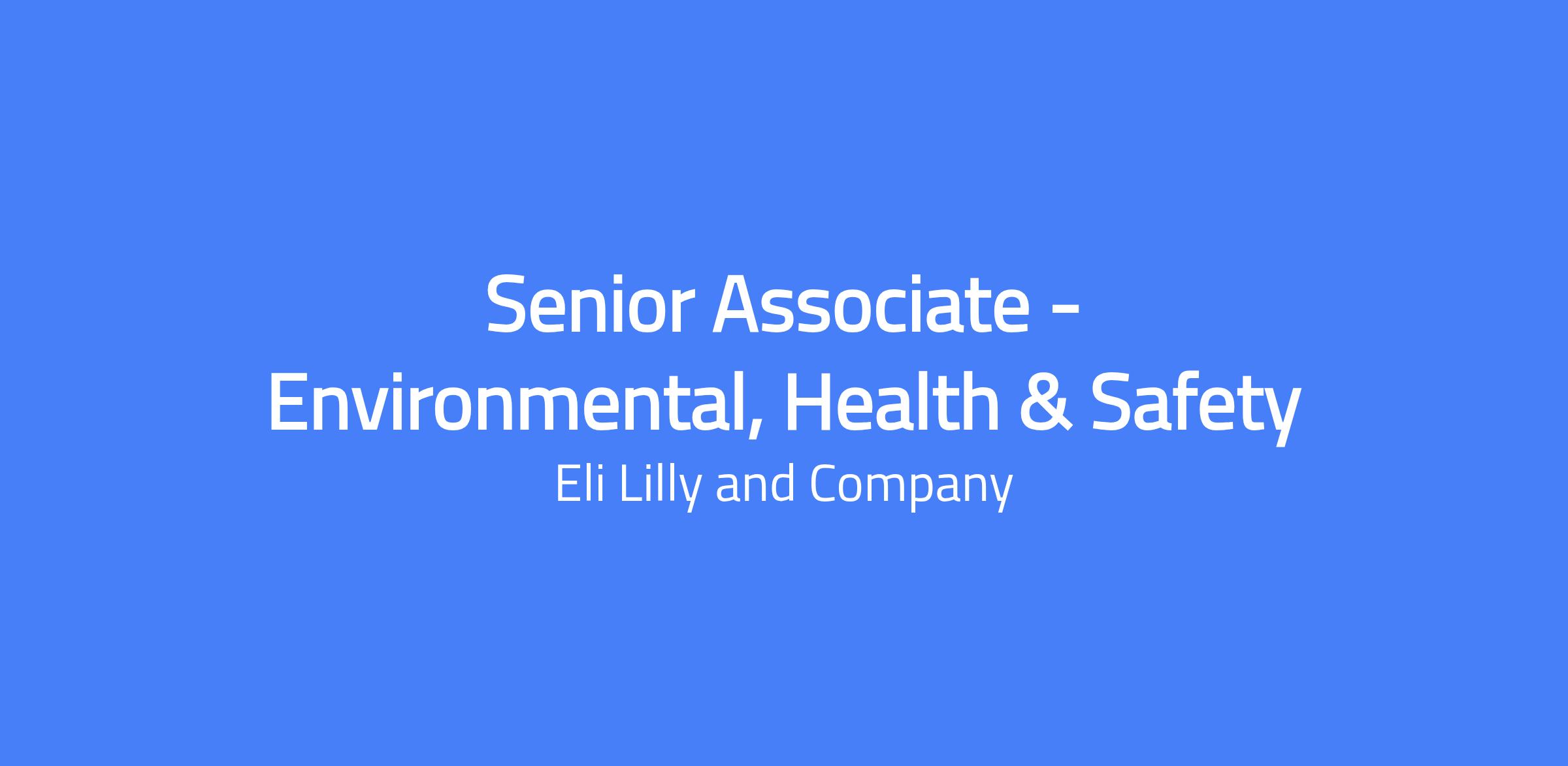 Senior Associate - Environmental, Health & Safety at Lilly's Kenosha County site in Pleasant Prairie, WI. Responsible for the development and technical support of environmental permits and programs, regulatory compliance, coordination of environmental activities, and driving environmental stewardship while supporting the transition from construction to startup and ongoing site operations.
