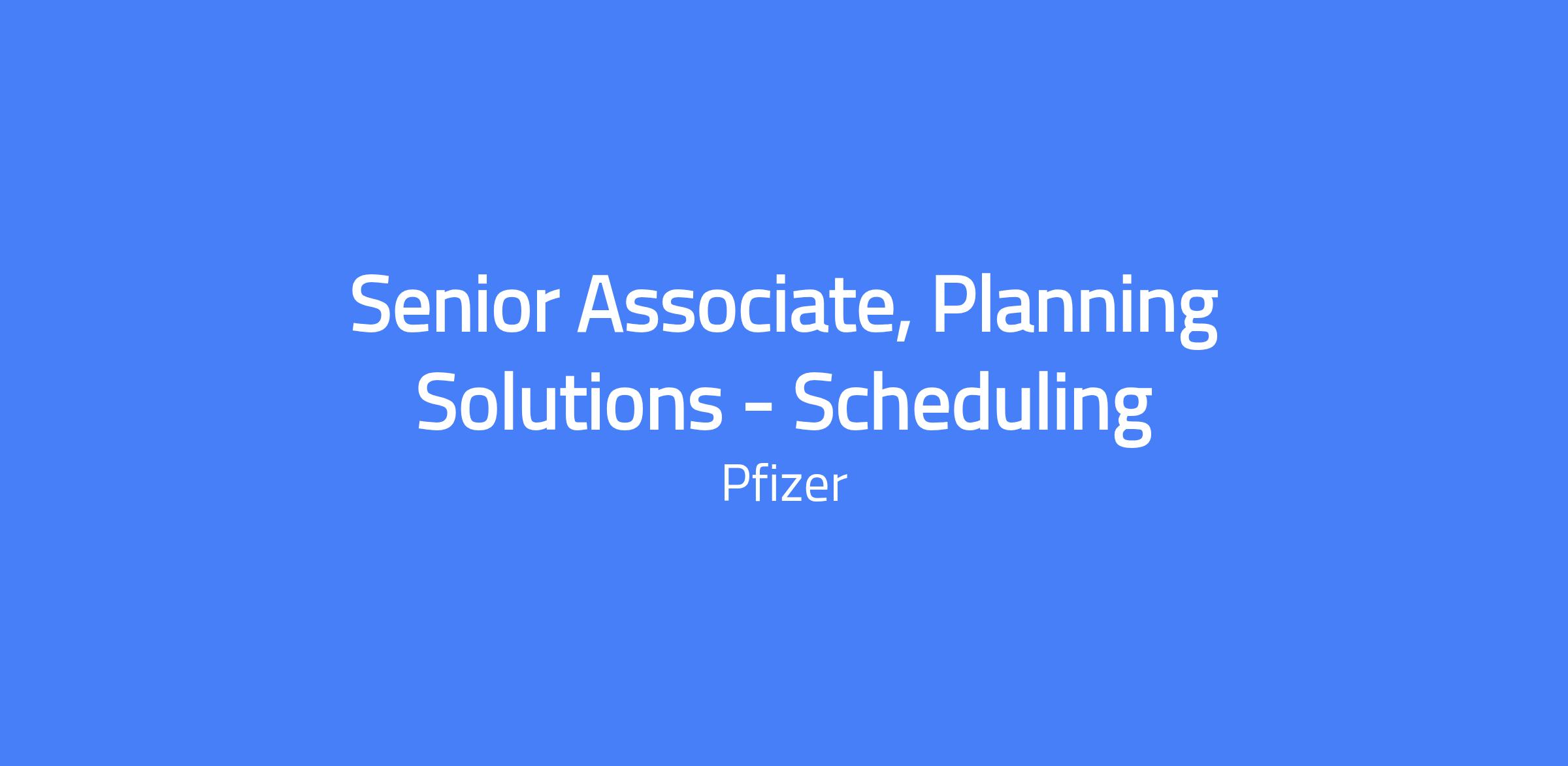 Senior Associate, Planning Solutions - Scheduling supports Pfizer's Digital Supply Chain initiatives by contributing to the Digital Transformation with Finite Scheduling and Advanced Production Planning. Working within a global team, you will gather technical requirements, drive design, configuration, implementation, and testing across the enterprise. You will manage the solution with a focus on continuous improvement, lifecycle management, and delivery across multiple workstreams in a fast-paced environment.