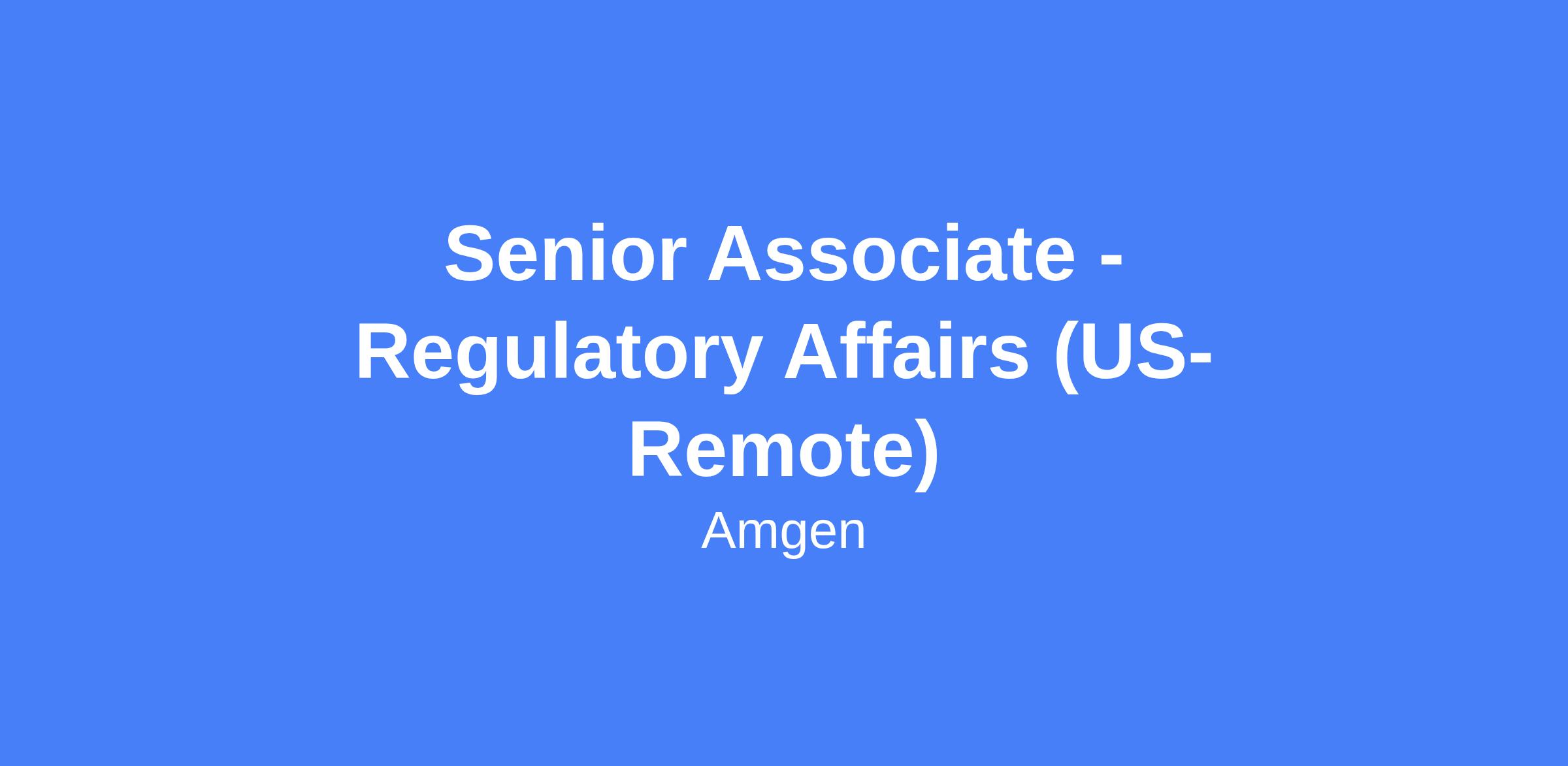 Senior Associate - Regulatory Affairs. In this role you will assist the US Regulatory Leads and the Global Regulatory Team (GRT) in the Regulatory Affairs organization.