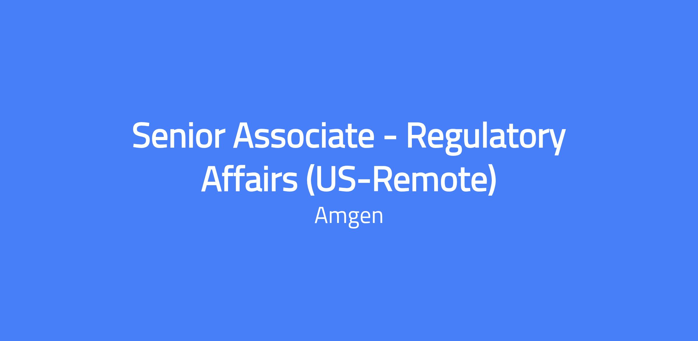 Senior Associate - Regulatory Affairs. In this role you will assist the US Regulatory Leads and the Global Regulatory Team (GRT) in the Regulatory Affairs organization.
