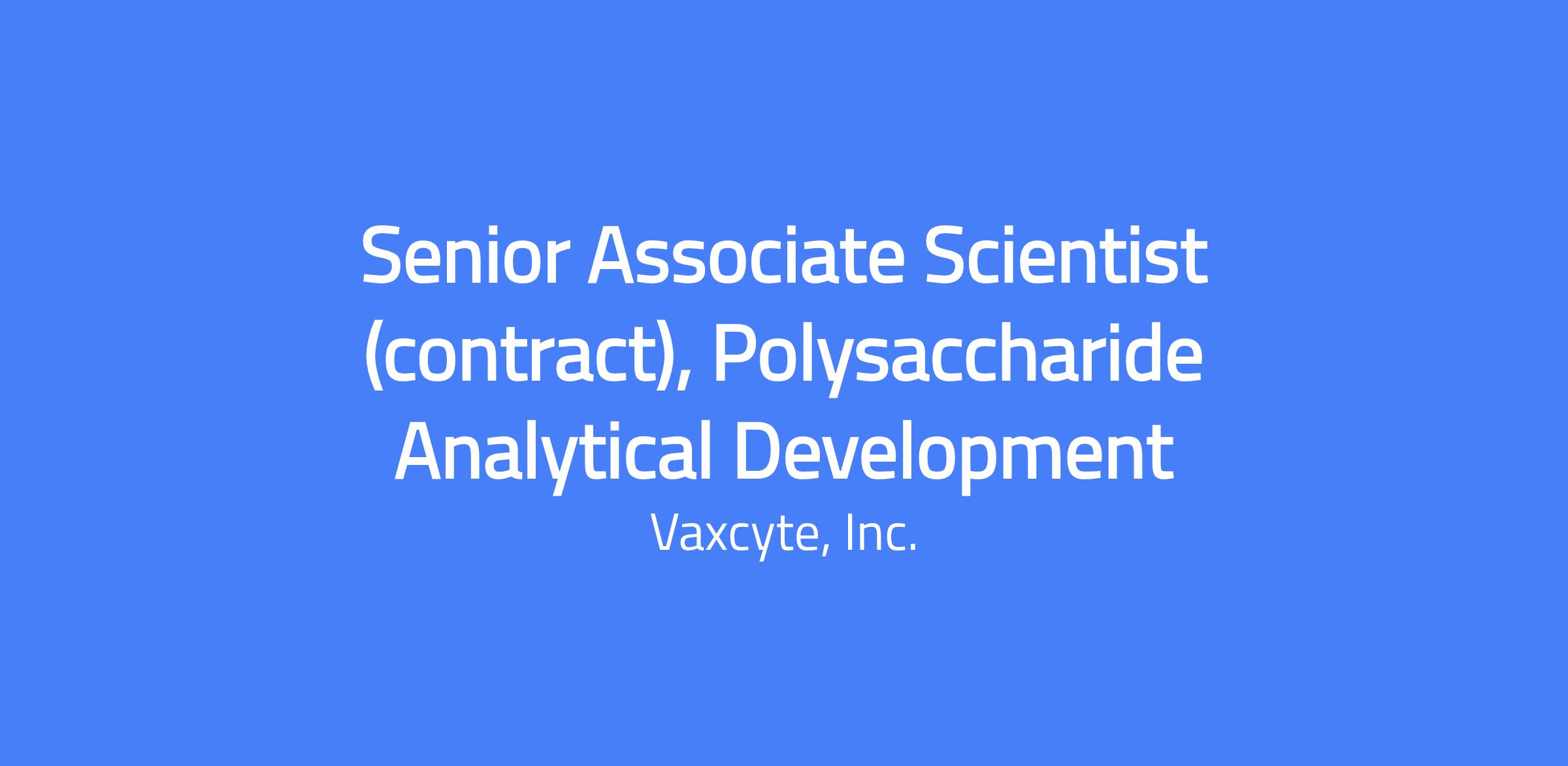 We are seeking a highly motivated and detail-oriented Senior Associate Scientist (Contract) to join our Polysaccharide team. Primary responsibility for the incumbent will be to support analytical testing and characterization of polysaccharide-based drug candidates. This individual will execute and optimize a variety of biochemical and chromatographic assays, contribute to method development initiatives, and ensure high-quality data generation in support of research and development programs. Â
