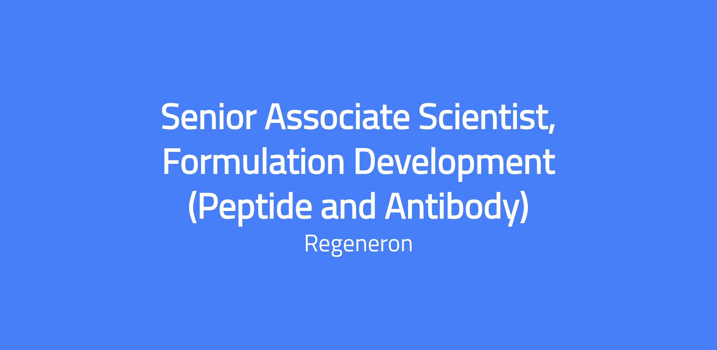 Sr. Associate Scientist in Regeneron's Formulation Development Group (FDG) to support early to late-stage development for biologics including antibodies and peptide modalities. Responsible for characterizing drug candidates and developing antibody and peptide formulations to enable preclinical and clinical development, and commercialization. Performs research on product characterization, formulation, and analytical technology development.