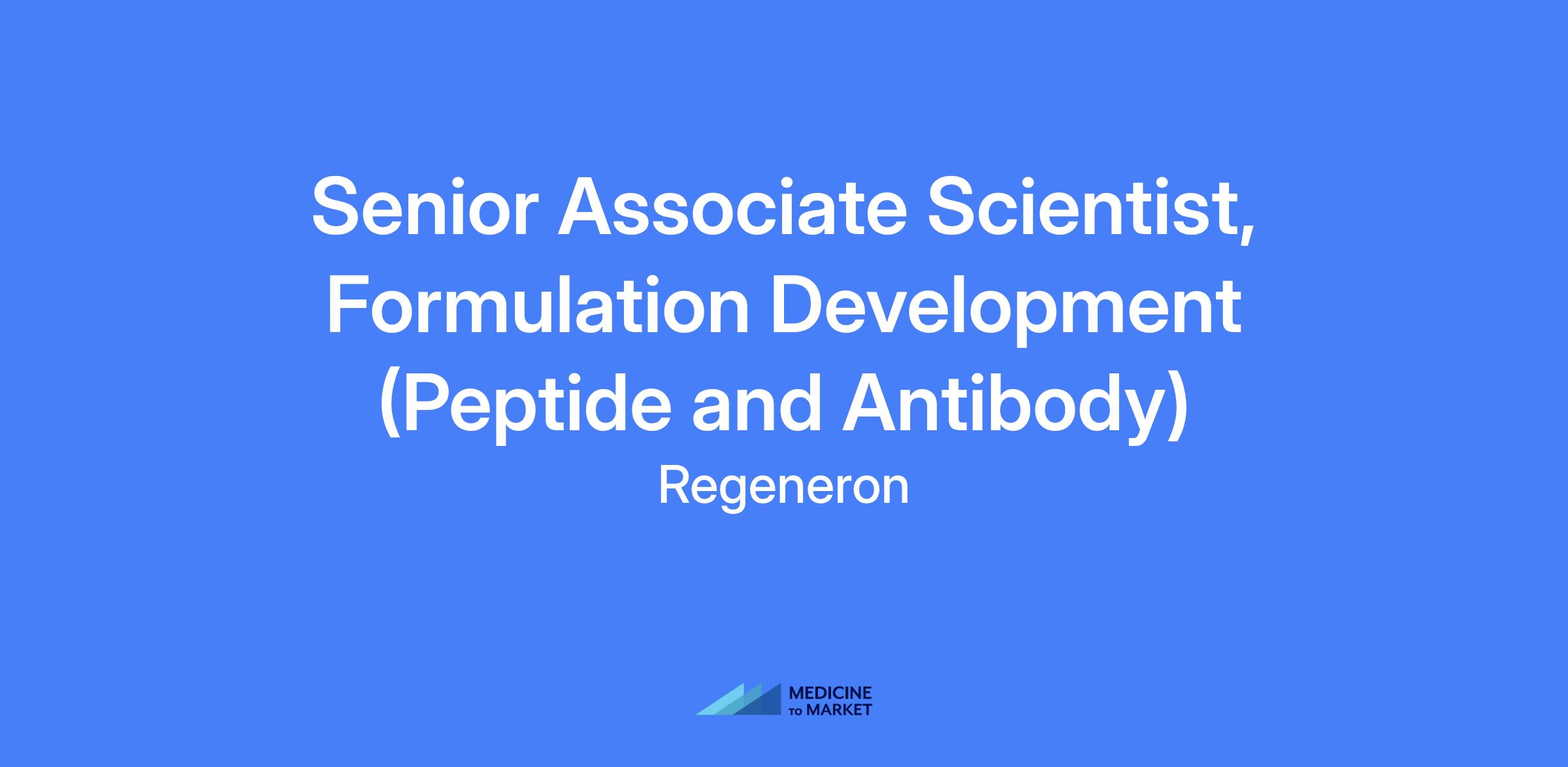 Senior Associate Scientist, Formulation Development (Peptide and Antibody) at Regeneron. Responsible for characterizing drug candidates and developing antibody and peptide formulations to enable preclinical and clinical development, and commercialization. Perform research on product characterization, formulation, and analytical technology development.