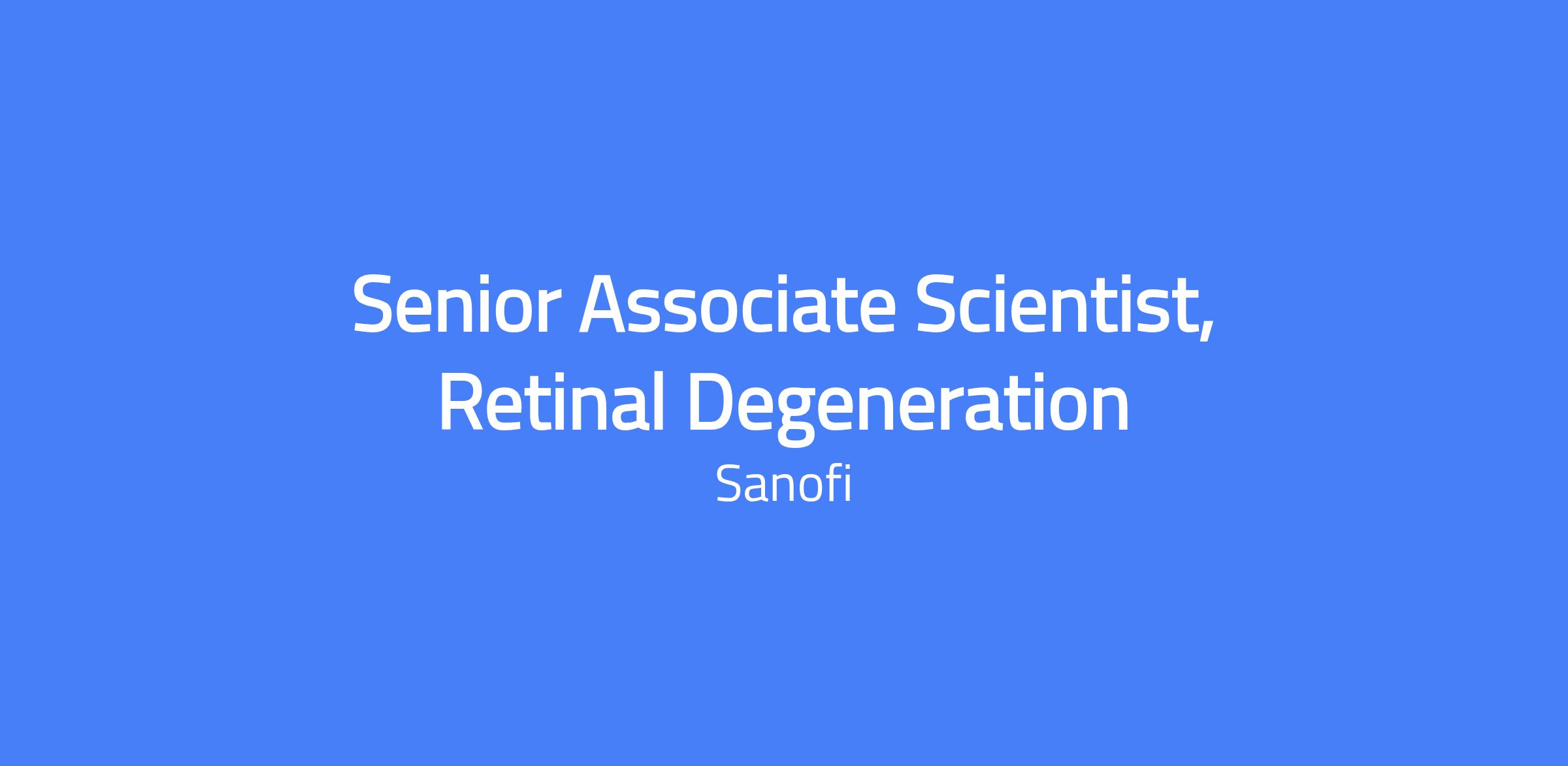 Senior Associate Scientist, Retinal Degeneration in Cambridge, MA. Conduct preclinical drug discovery research for retinal diseases, including age-related macular degeneration and glaucoma. Work collaboratively in matrixed, cross-functional teams to validate therapeutic strategies and discover promising drug candidates and advance them toward clinical development.