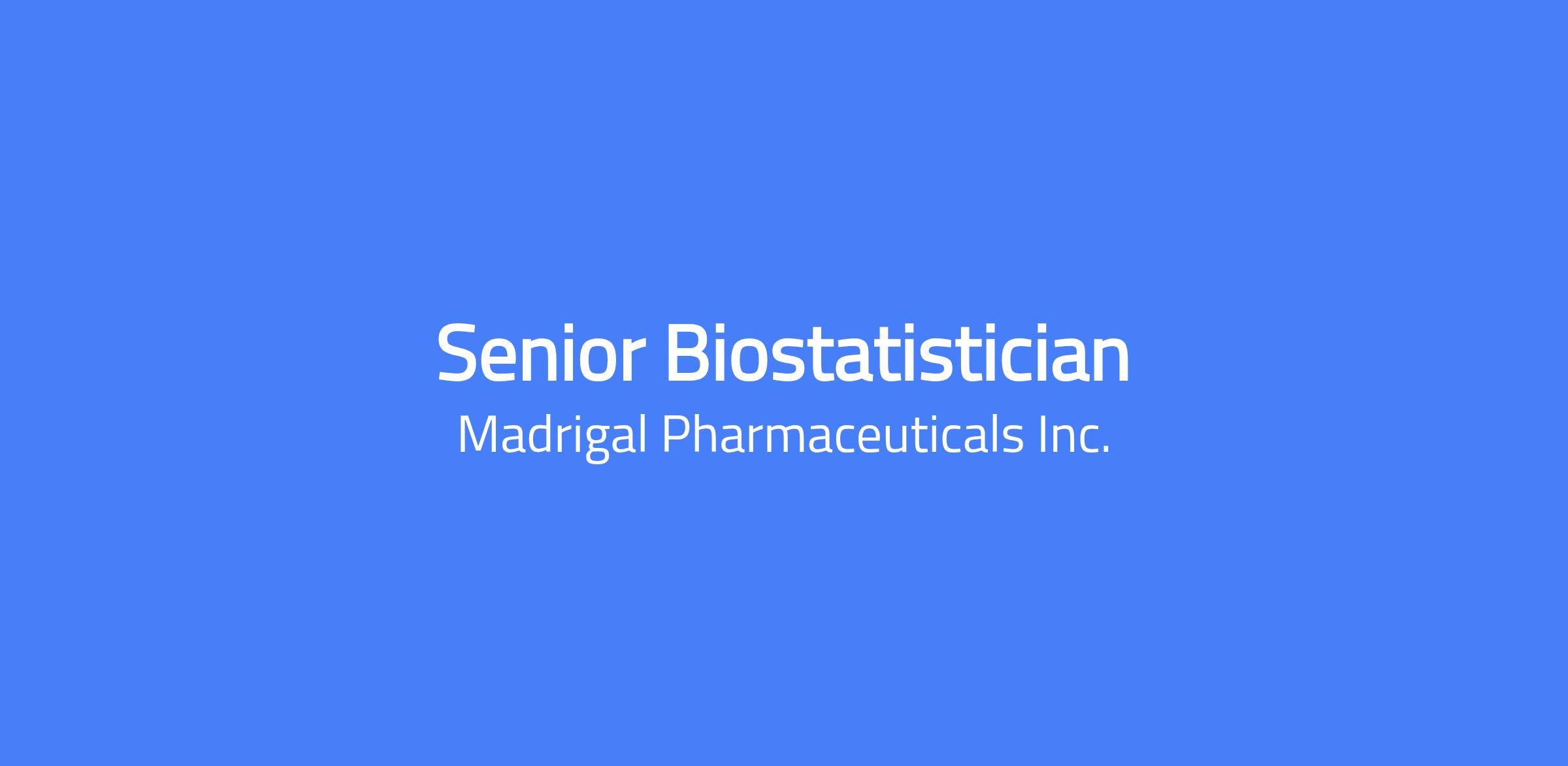 Madrigal is a biopharmaceutical company focused on delivering novel therapeutics for metabolic dysfunction-associated steatohepatitis (MASH), a serious liver disease that can progress to cirrhosis, liver failure, need for liver transplantation and premature mortality. Every member of our Madrigal team is connected by our shared purpose: leading the fight against MASH. Madrigal’s medication, Rezdiffra (resmetirom), is a once-daily, oral, liver-directed THR-β agonist designed to target key underlying causes of MASH. Rezdiffra is the first and only medication approved by both the FDA and European Commission for the treatment of MASH with moderate to advanced fibrosis (F2 to F3). An ongoing Phase 3 outcomes trial is evaluating Rezdiffra for the treatment of compensated MASH cirrhosis (F4c). Our success is driven by our people. We are building a dynamic, inclusive, and high-performing culture that values scientific excellence, operational rigor, and collaboration. To support our continued growth, we are strengthening our workforce strategy to ensure we have the right talent, at the right time, in the right way. The Senior Biostatistician is an early-career individual contributor that will contribute to multiple biostatistical activities for Madrigal Pharmaceuticals, covering all phases of clinical development and post-marketing efforts. This role will collaborate with other biostatisticians, programmers and cross-functional team members either within the company or at a CRO partner to ensure that Madrigal’s analytical objectives are met. The incumbent will support the translation of organizational objectives into statistical deliverables, contribute to the execution of statistical strategies, and deliver high-quality analytical outputs. This role provides hands-on biostatistics experience in clinical development and post-marketing evidence generation, while building expertise under senior statistical guidance. This position reports into the VP of Biostatistics. Responsibilities: This role will execute statistical modeling and analyses, coordinating with other biostatisticians, programmers and cross-functional team members to meet R&D objectives. Perform and review complex statistical analyses, contribute to protocol development and prepare Statistical Analysis Plans as needed. Contribute to the design and analysis of clinical and real-world data to support evidence generation initiatives from randomized trials as well as observational studies. Establish effective collaborations with cross-functional team members, such as clinical research, medical affairs, clinical operations and data management. Contribute to scientific excellence via statistical innovation and participation in external conferences. Qualifications: Ph.D. in (Bio)statistics with 2+ years, or a Master’s degree with 5+ years of experience in a Pharma or Biotech environment. Experience in design and analysis of clinical trials and healthcare datasets. Solid foundation in advanced statistical methods and computing (R, SAS). Effectively communicates complex statistical analyses and concepts to non-statisticians. Knowledge of regulatory guidelines in pharmaceutical development is a plus. Excellent organizational and communication skills. Madrigal’s Total Rewards strategy is based on a biotech industry peer group comparator and is inclusive of base pay, bonus and equity. Our equity offers meaningful opportunity allowing our employees to share in the success they help create. By aligning individual and company performance, we empower employees to think like owners, giving them a stake in the organization. All employees receive equity, which we believe reinforces our ownership culture. Base salary is determined by several factors including the candidate’s qualifications, skills, education, experience, business needs and market demands. As of the date of this posting, a good faith estimate of the current pay scale for this position, applicable to all candidates, is $146,700 - $179,300 per year. We comply with all applicable minimum wage laws. All full-time employees receive equity, which reinforces our ownership culture and offers meaningful opportunity for our employees to share in the success they help create. By aligning individual and company performance, we empower employees to think like owners, giving them a stake in the organization. Full-time employees are also eligible for comprehensive benefits, including flexible paid time off, medical, dental, vision and life/disability insurance, and 401(k) offerings (i.e., traditional, Roth, and employer match) in accordance with applicable plans. We also offer additional voluntary benefits like supplemental life insurance, legal services, and other offerings. In addition, we offer mental health benefits through our Employee Assistance Program for employees and their family. The company also provides other benefits in accordance with applicable federal, state, and local laws. We are committed to providing reasonable accommodations for individuals with disabilities throughout the hiring process. If you need assistance, please contact HR@madrigalpharma.com. Madrigal is an Equal Opportunity Employer. All employment is decided on the basis of qualifications, merit, and business need. Applicants will receive consideration for employment without regard to race, ethnicity, color, religion, sex gender identity, sexual orientation, national origin, age, disability, protected veteran or disabled status, or other characteristic protected by applicable federal, state, or local law. Unsolicited resumes from agencies should not be forwarded to Madrigal. Madrigal will not be responsible for any fees arising from the use of resumes through this source. Madrigal will only pay a fee to agencies if a formal agreement between Madrigal and the agency has been established. Applications are being accepted on an ongoing basis and can be submitted through our Madrigal Careers site. Please be aware tha