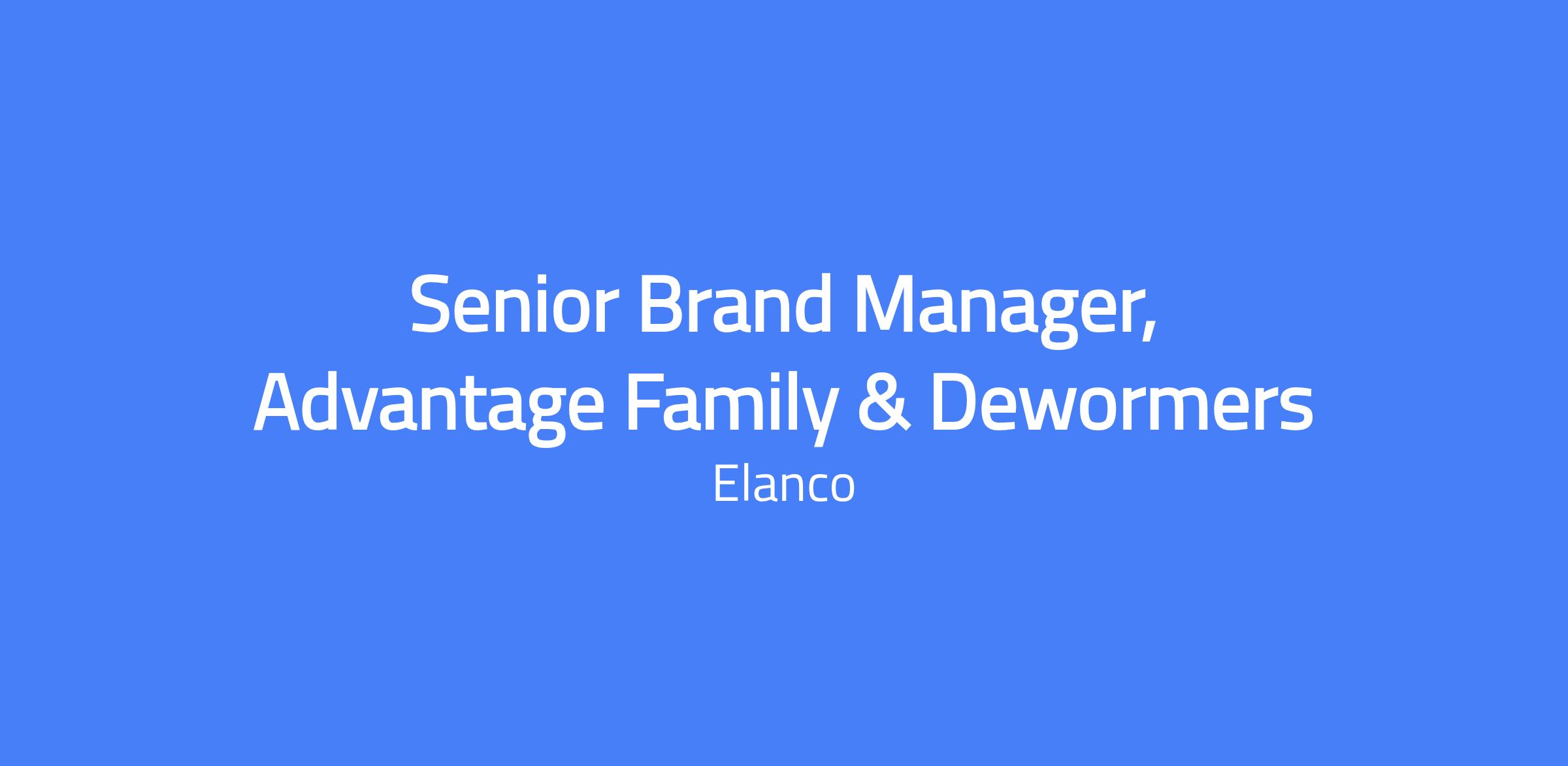 Senior Brand Manager, Advantage Family & Dewormers. You will be a key leader within Elancoโs U.S. Pet Health OTC business, a fast-growing segment of the pet health industry. You will partner closely with the Executive Director of OTC Brand Marketing to shape the future of iconic, category-leading brands by driving brand growth, profitability, and innovation through strong strategic leadership and flawless execution.
