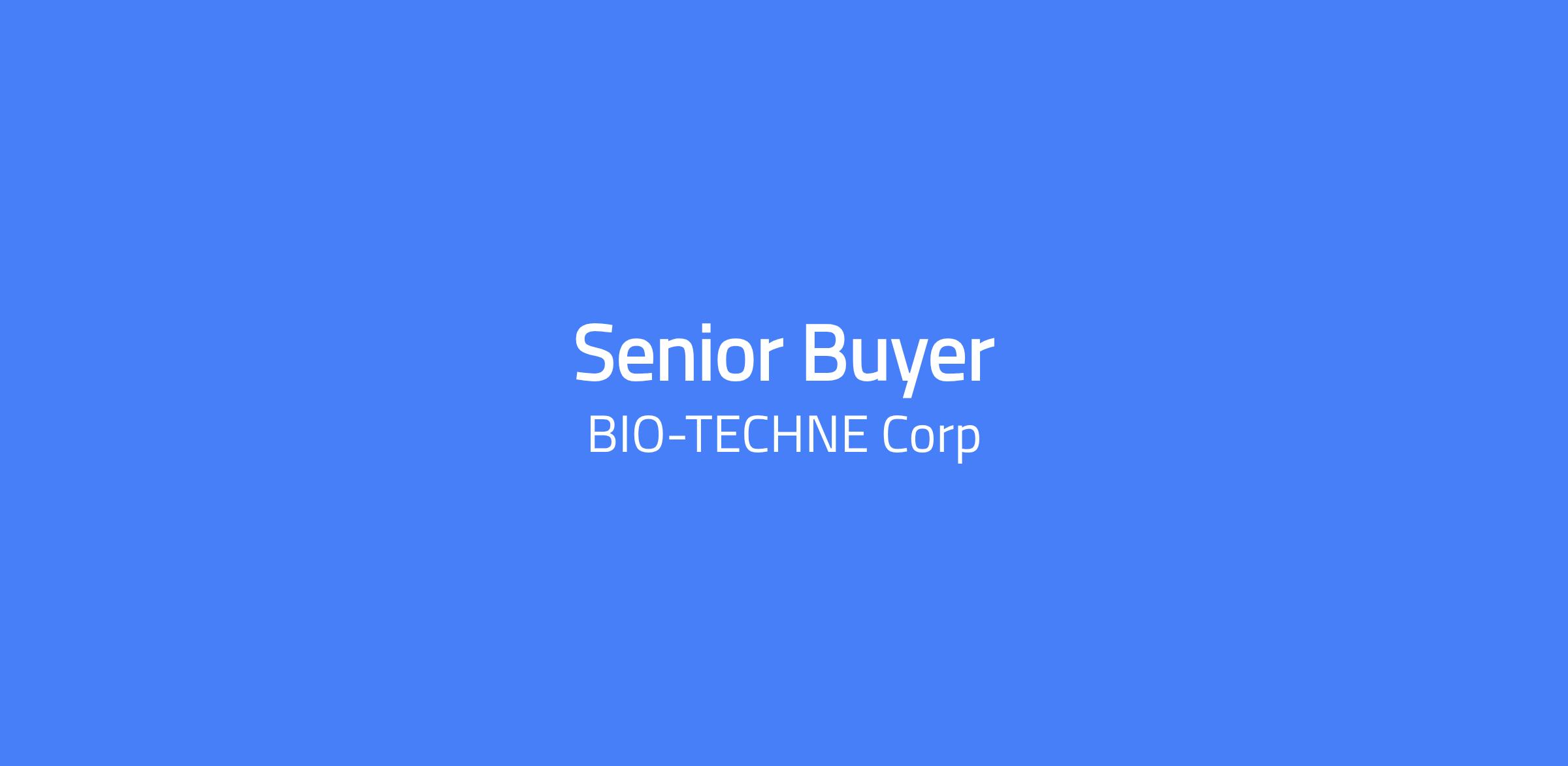 By joining Bio-Techne, youâll join a company with a powerful and positive purpose of enabling cutting-edge research in Life Sciences and Clinical Diagnostics. Bio-Techne, and all of its brands, provides tools for researchers to further treat and prevent disease worldwide. Pay Range: $69,800.00 - $114,800.00 Position Summary:⯠The Senior Buyer leads complex purchasing activities and independently manages supply continuity across critical materials and suppliers. This role resolves issues of diverse scope through analysis and creative problem-solving, exercises significant judgment, and provides guidance to lower-level Buyers. The Senior Buyer collaborates broadly across departments and typically receives minimal instruction on day-to-day responsibilities. Key Responsibilities:⯠Lead procurement activities for complex or critical materials to ensure uninterrupted supply Independently manage supplier performance, delivery issues, and inventory risks Analyze supply, demand, and inventory trends to recommend corrective actions Resolve a wide range of purchasing and supply issues using sound judgment and experience Build strong cross-functional partnerships to align supply strategies and execution Train and mentor lower-level Buyers on purchasing processes, tools, and best practices Drive process improvements and contribute to purchasing and supply chain initiatives QUALIFICATIONS Education and Experience: Bachelorâs degree in Supply Chain, Business, Operations, or related field, or equivalent experience 5+ years of progressive experience in purchasing, procurement, supply chain, or manufacturing Advanced experience with ERP or MRP systems Experience in regulated environments (ISO 9001 / ISO 13485) required Knowledge, Skills, and Abilities: Advanced knowledge of purchasing, inventory, and supply chain principles Skills in troubleshooting complex supply issues and leading independent initiatives Skills in mentoring and knowledge sharing Ability to exercise judgment and make decisions with limited guidance Ability to communicate effectively with stakeholders at multiple levels Ability to manage competing priorities in a fast-paced environment Working Conditions: Onsite work in a standard business office and operations environment Minimal travel within North America. Ability to work hours that conform to core department operations (9am â 3 pm) Physical Requirements: Ability to sit, stand, and work at a computer for extended periods Why Join Bio-Techne: We offer competitive insurance benefits starting on day one: medical, dental, vision, life, short-term disability, long-term disability, pet, and legal and ID shield. We invest in our employeesâ financial futures through 401k plans, an employee stock purchase plan (ESPP), Health Saving Account (HSA), Flexible Spending Account (FSA), and Dependent Care FSA. We empower our employees develop their careers through mentorship, promotional opportunities, training and development, tuition reimbursement, internship programs, and more. We offer employee resource groups, volunteer paid time off, employee events, and charity drives to build a culture of caring and belonging. We offer an accrued leave policy with paid holidays, paid time off, and paid parental leave. We foster a culture of empowerment and innovation, where employees feel valued and encouraged to bring their new ideas to the table. Bio-Techne is an E-Verify Employer in the United States. All qualified applicants will receive consideration for employment without regard to race, color, religion, sex, sexual orientation, gender identity, national origin, disability, or status as a protected veteran. To protect the interests of all, Bio-Techne will not accept unsolicited resumes from any source other than a candidate application. Any unsolicited resumes sent to Bio-Techne will be considered Bio-Techne property. Bio-Techne empowers researchers in Life Science and Clinical Diagnostics by providing high-quality reagents, instruments, custom manufacturing, and testing services. Our family of brands creates a unique portfolio of products and services. Science is our passion; it drives us to collaborate, develop, and manufacture award-winning tools that help researchers achieve reproducible and consistent results.