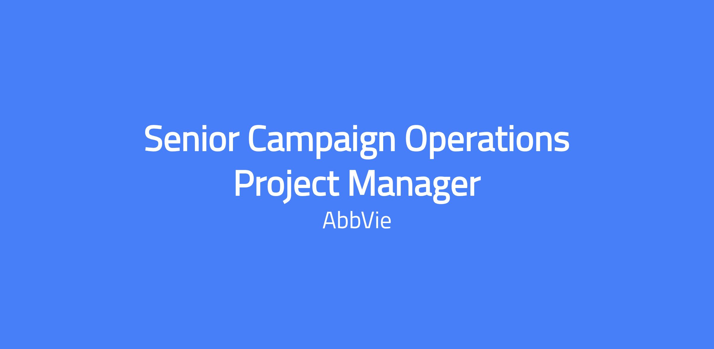 The Senior Campaign Operations Project Manager is part of the AbbVie Digital Lab team and leads the day-to-day management, execution, and delivery of CRM projects across AbbVie’s Patient-supported brands. This role focuses on tactical execution of the campaign roadmap through its entire lifecycle to increase performance and efficiency, supporting cross-functional teams and agency partners across email, SMS, and direct mail campaigns.
