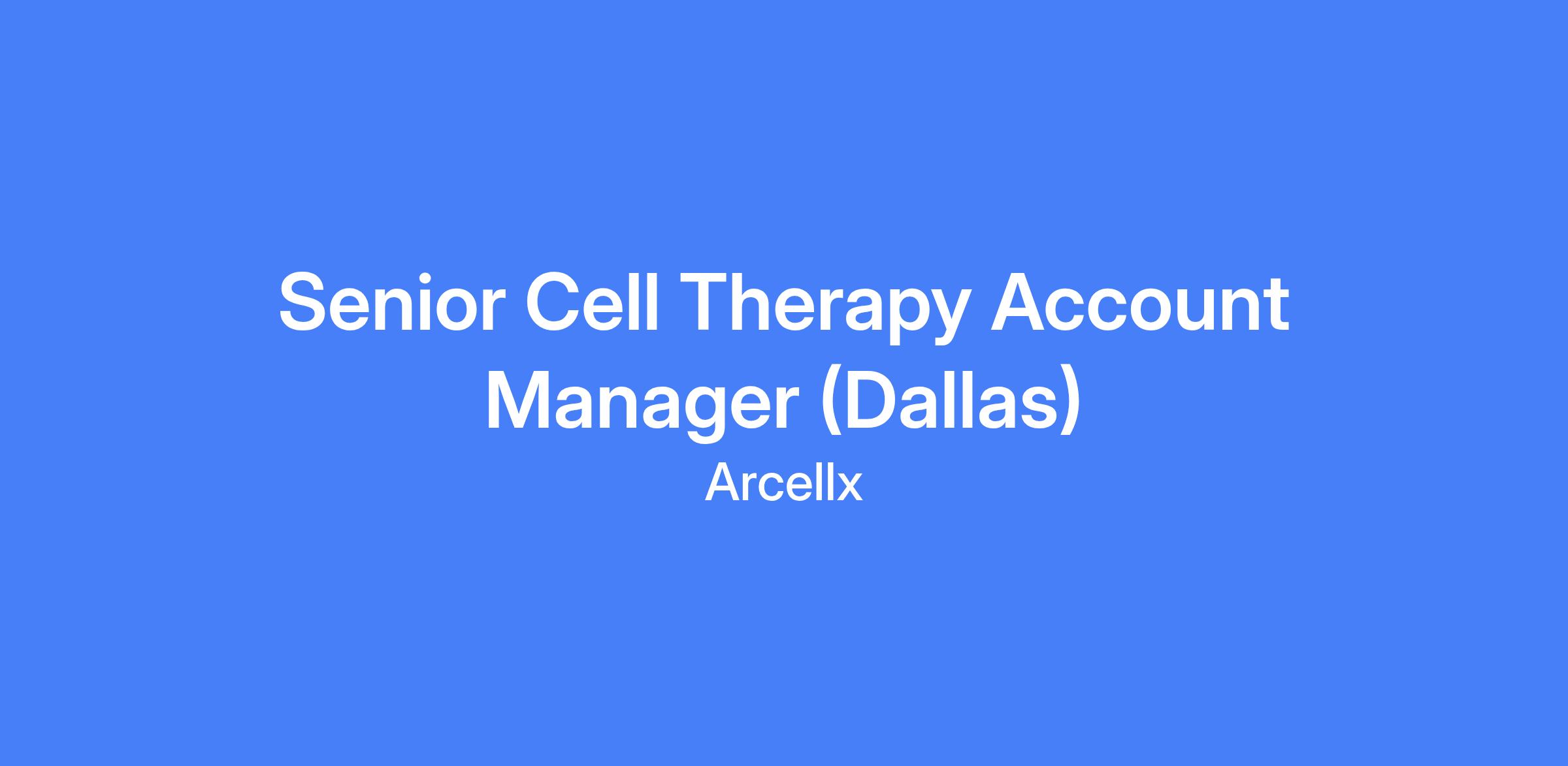 The Senior Cell Therapy Account Manager (Sr. CTAM) drives sales by accelerating the adoption and appropriate use of Arcellx cell therapy products across leading academic hospitals and community networks. As the account lead, the Sr. CTAM creates and executes strategic account plans that expand therapy access, elevate treatment center performance, and deliver an exceptional experience for patients and providers, with a focus on advancing outcomes for people living with multiple myeloma. This role covers the Dallas, Fort Worth, Temple, Amarillo, and Lubbock geography.