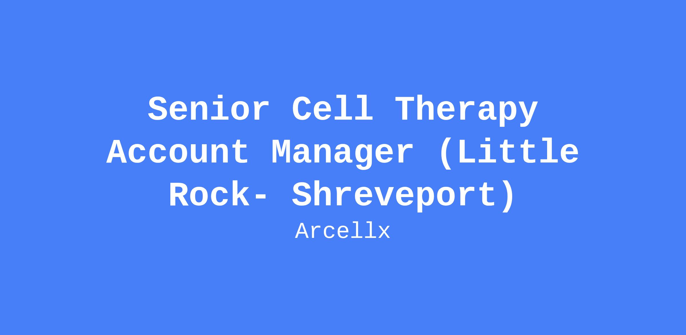 The Senior Cell Therapy Account Manager (Sr. CTAM) is responsible for sales by accelerating the adoption and appropriate use of Arcellx cell therapy products across leading academic hospitals and community networks. As the account lead, the Sr. CTAM drives strategic account management—creating and executing action plans that expand therapy access, elevate treatment center performance, and deliver an unrivaled experience for both patients and providers. This role is central to advancing Arcellx’s mission to transform outcomes for people living with multiple myeloma. The states covered in this geography are: AR, LA.