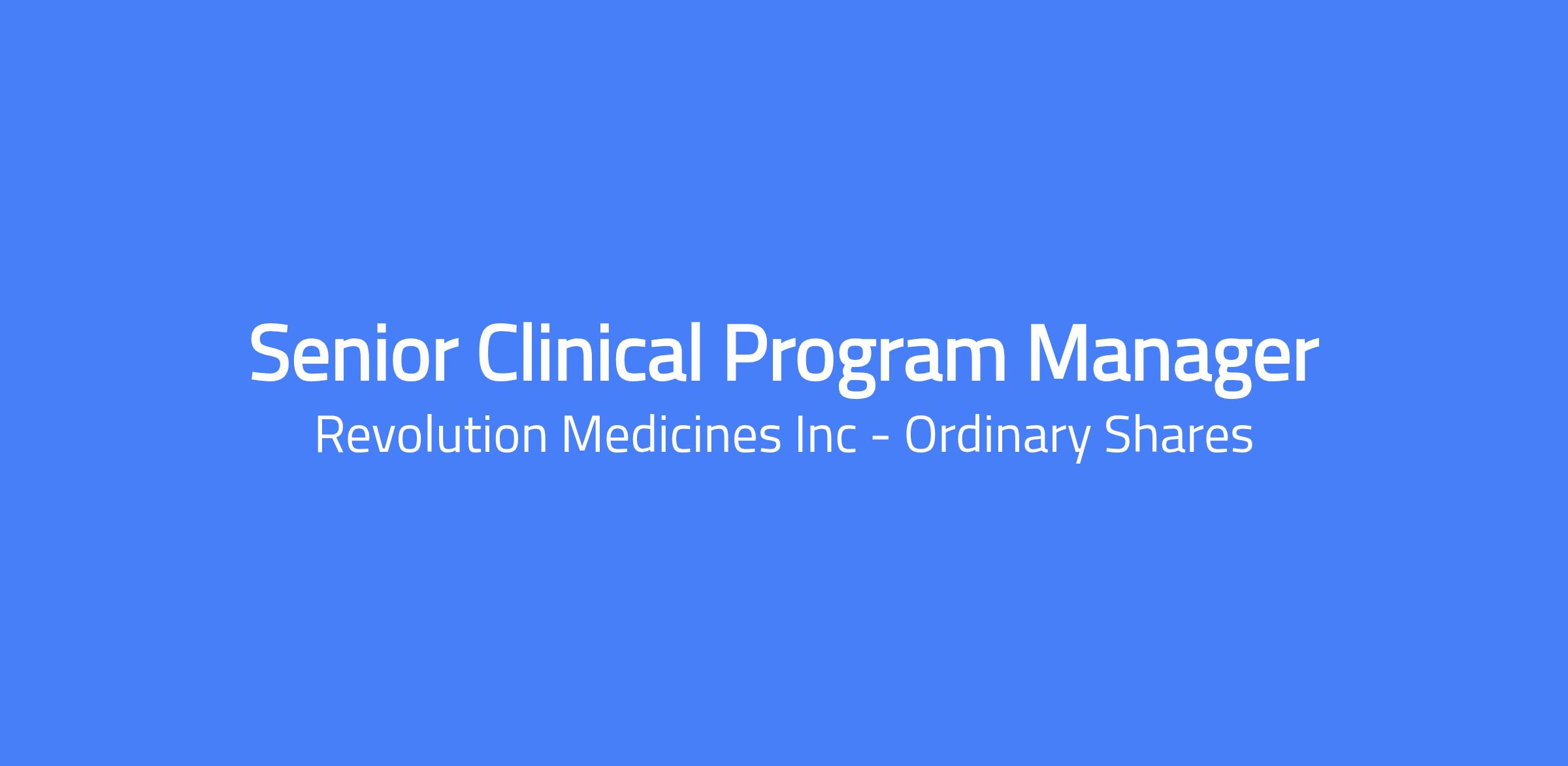 This is a unique opportunity for a Clinical Operations Professional. As a Sr. Clinical Program Manager, you will be responsible for acting as a central contact for the Clinical Study Team(s) and assist with the execution and management of Revolution Medicines (RevMed) clinical trials.