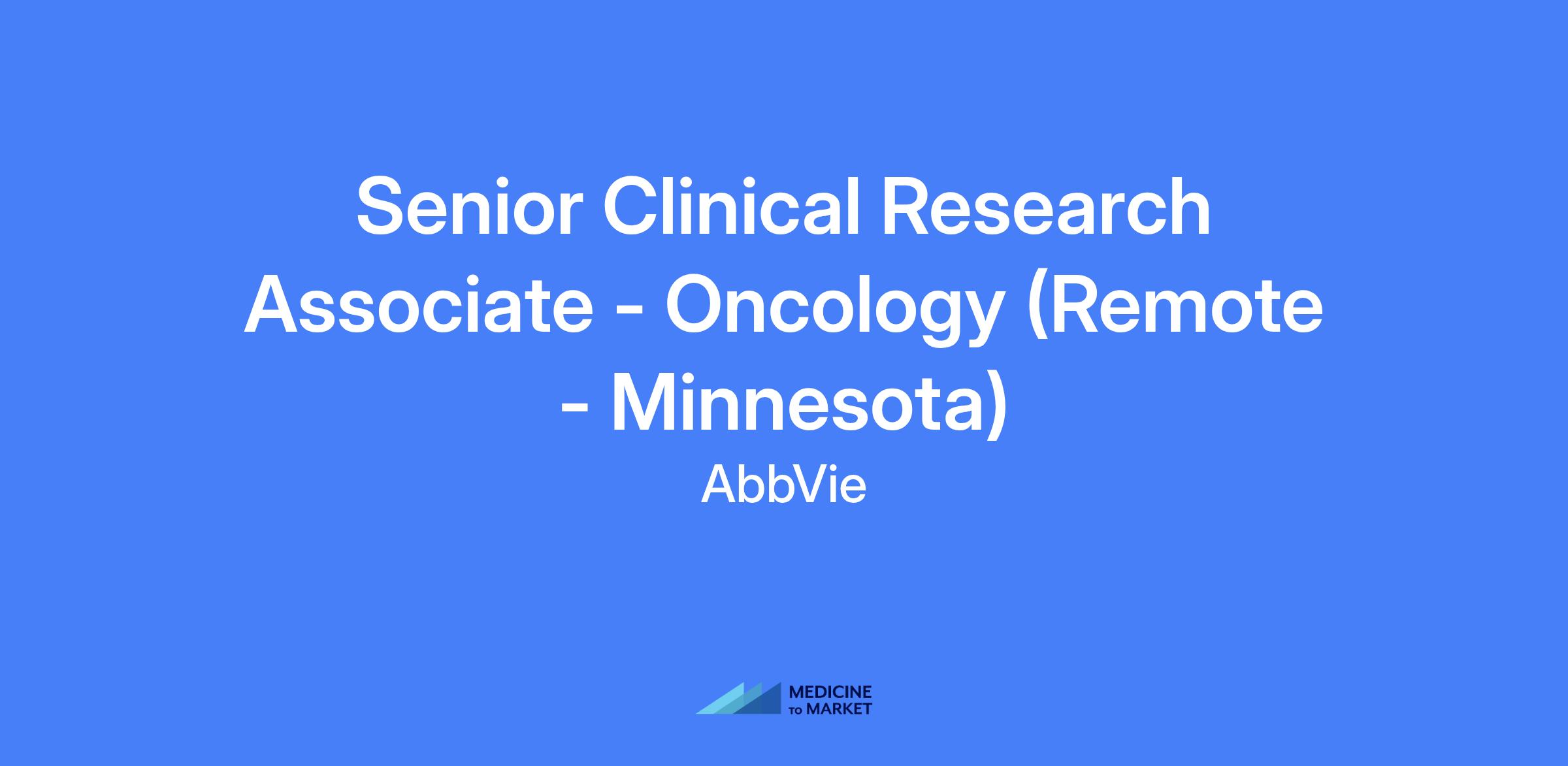 Senior Clinical Research Associate - Oncology (Remote - Minnesota)