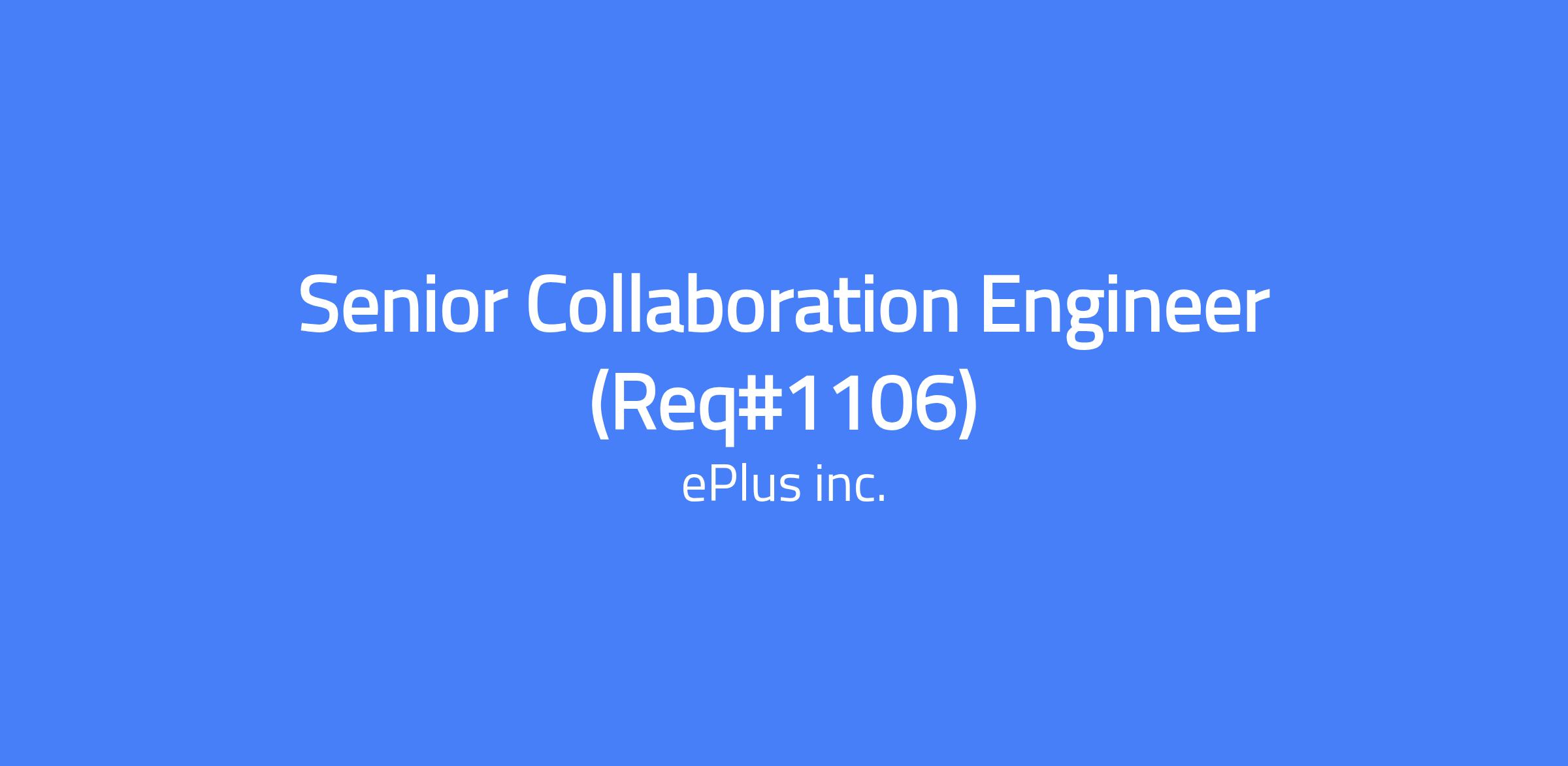 As an ePlus Senior Collaboration Engineer, you will be responsible for designing and implementing single- or multi-vendor Collaboration Technology Solutions. You will have the opportunity to work within an industry-leading account team to understand our clients’ needs and craft sustainable Collaboration roadmaps to get them there.