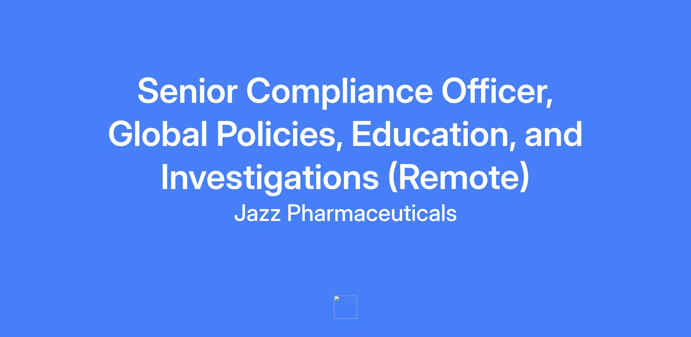 Senior Compliance Officer, Global Policies, Education, and Investigations (Remote) who will develop, implement, and enhance global compliance and privacy policies and training, and lead the global investigations team. Will collaborate with senior leadership across Jazz and manage external counsel on sensitive investigations.