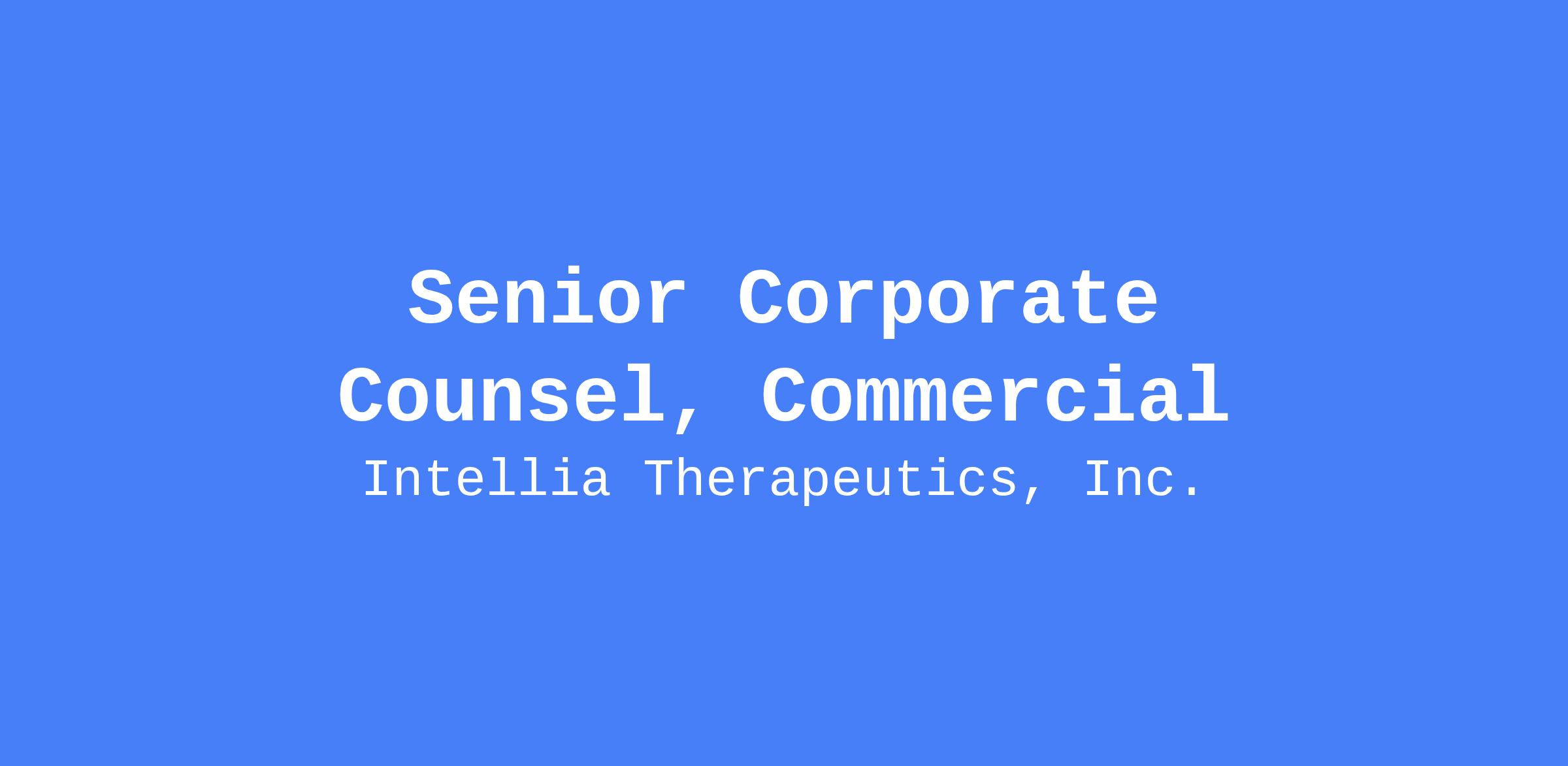 - The Senior Corporate Counsel will provide primary legal support for the launch of Intellia’s first product by working closely with leadership teams and other employees on all aspects of the commercial business.