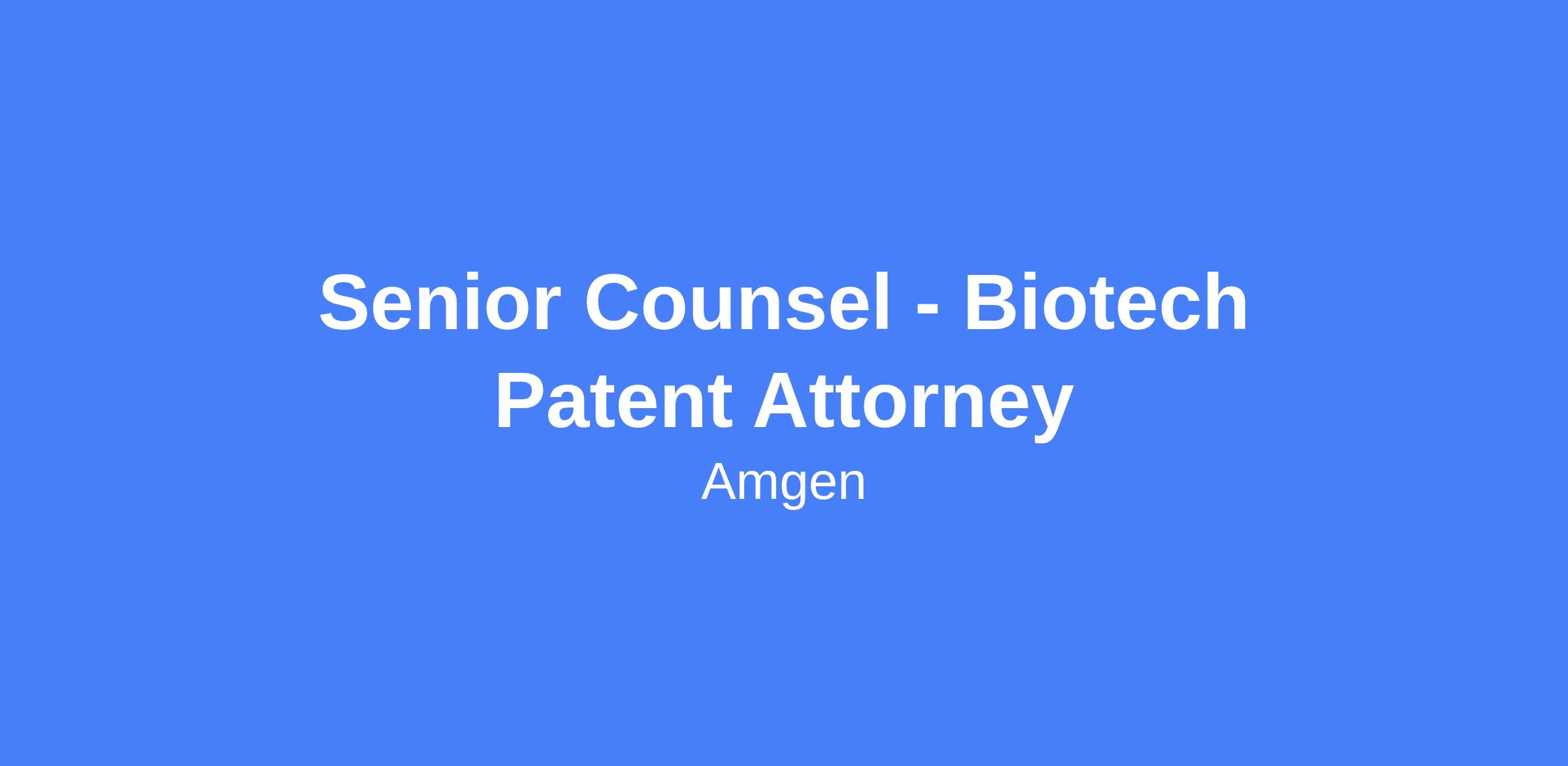 Senior Counsel - Biotech Patent Attorney will develop, implement, and execute a global intellectual property strategy to protect Amgen’s therapeutic products and product candidates (e.g., antibodies, dual targeting molecules, antibody-peptide conjugates, antibody-drug conjugates). You will work with scientists and cross-functional teams to identify patentable inventions, provide IP counsel, and support licensing, prosecution, and litigation activities.
