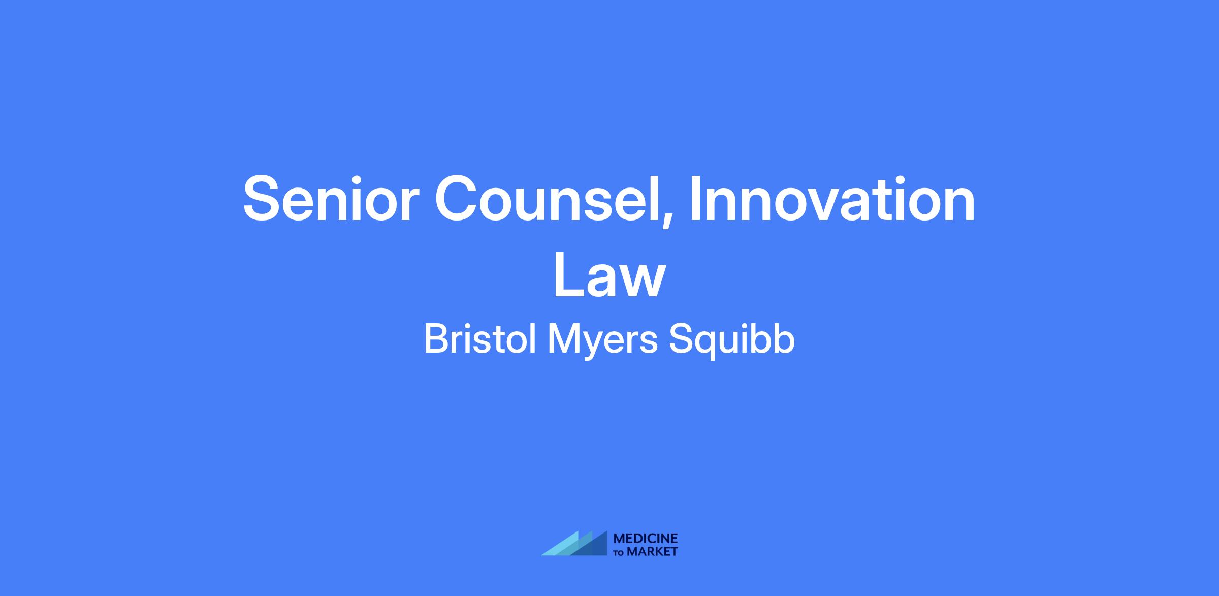 Senior Counsel, Innovation Law at Bristol Myers Squibb. Provide business-oriented IP legal guidance to support the business development organization, collaborating across the Law Department to deliver practical, timely advice to internal clients.