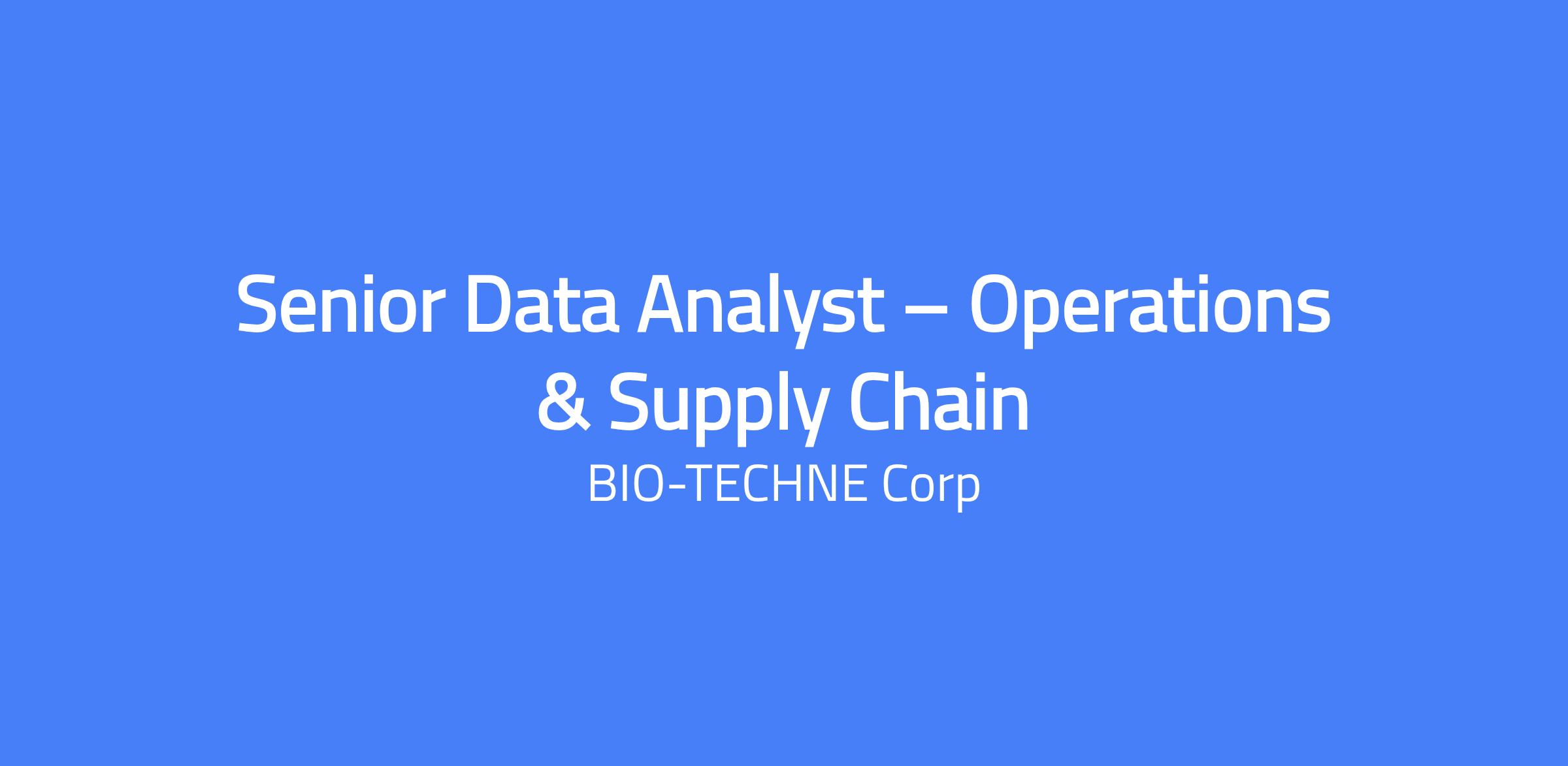 By joining Bio-Techne, youâll join a company with a powerful and positive purpose of enabling cutting-edge research in Life Sciences and Clinical Diagnostics. Bio-Techne, and all of its brands, provides tools for researchers to further treat and prevent disease worldwide. Pay Range: $78,100.00 - $128,500.00 Position Summary: As a Senior Data Analyst â Operations & Supply Chain, you will be a key contributor in driving supply chain agility, operational excellence, and cost efficiency through data. This role sits at the intersection of analytics, business operations, and strategy, supporting teams across manufacturing, planning, inventory management, and fulfillment. You will develop scalable analytics tools and provide actionable insights that directly influence decision-making, with a focus on areas such as inventory optimization, demand forecasting, MRP alignment, and capacity planning. You will work cross-functionally with business leaders, stakeholders, and technical teams to build scalable analytics solutions that optimize our supply chain and operational processes. Key Responsibilities: Develop Advanced Analytics Solutions: Build and maintain dashboards and tools using Power BI, SQL, and Excel to deliver end-to-end visibility across supply chain KPIs including inventory turns, forecast accuracy, OTD, and production throughput. Supply Chain & Manufacturing Analysis: Analyze complex datasets from ERP/MRP systems, demand plans, and production schedules to uncover inefficiencies, delays, and root causes. Drive continuous improvement in areas such as order flow, raw material availability, safety stock, and build plans. Inventory Planning & Forecasting: Support demand and supply planning by building models that improve inventory health, predict shortages or overages, and align stock levels with customer demand and production constraints. MRP System Integration: Partner with planning and operations teams to ensure data models and recommendations align with MRP logic and master data structures. Help shape BOM, lead time, and lot size assumptions to improve planning accuracy. Strategic Insights & Decision Support: Translate data into strategic recommendations for operations and supply chain leaders. Focus on balancing service levels, working capital, and operational cost through better planning and scenario modeling. Automation & Scalability: Design and implement automated pipelines, workflows, and reporting processes that reduce manual work, increase visibility, and enable proactive response to supply/demand variability. Stakeholder Engagement: Act as a thought partner to manufacturing, logistics, and finance stakeholders. Communicate findings clearly and tailor insights to operational, technical, and executive audiences. Mentorship & Collaboration: Provide guidance to junior analysts and support a culture of data fluency across the supply chain team. Project Leadership: Lead and manage high-impact analytics initiatives, ensuring timely delivery and alignment with organizational goals. Required Qualifications: Bachelorâs degree in Supply Chain, Finance, Accounting, Operations, Business Analytics, Industrial Engineering, or related field 6â8 years of experience in data analytics with a strong focus on supply chain, operations, or manufacturing Advanced proficiency in Power BI, SQL, and Excel, with experience in automation and scripting Proven experience with inventory planning, demand forecasting, MRP, ERP systems Experience with predictive modeling, regression analysis, and correlation techniques Ability to distinguish signal from noise in complex datasets, providing clear insights for leadership Proven track record of developing scalable, long-term analytical solutions Strong project management skills with the ability to lead and execute initiatives Strong business acumen and understanding of how supply chain data impacts cost, service, and capacity Strong understanding of financial and operational metrics and how they influence business performance Clear and confident communication skills, including stakeholder-facing presentations Preferred Qualifications: Experience working with Salesforce, Smartsheet, or other business intelligence tools is a plus Experience building dashboards and tools that drive operational execution and planning decisions Experience in a warehouse, manufacturing or production environment Familiarity with production scheduling, capacity planning, and BOM structures Statistical or ML modeling experience for forecast or simulation Knowledge of Lean, Six Sigma, or process improvement methodologies Experience working with cross-functional data (e.g., sales, finance, operations) to enable full-picture decision-making Why Join Bio-Techne: We offer competitive insurance benefits starting on day one: medical, dental, vision, life, short-term disability, long-term disability, pet, and legal and ID shield. We invest in our employeesâ financial futures through 401k plans, an employee stock purchase plan (ESPP), Health Saving Account (HSA), Flexible Spending Account (FSA), and Dependent Care FSA. We empower our employees develop their careers through mentorship, promotional opportunities, training and development, tuition reimbursement, internship programs, and more. We offer employee resource groups, volunteer paid time off, employee events, and charity drives to build a culture of caring and belonging. We offer an accrued leave policy with paid holidays, paid time off, and paid parental leave. We foster a culture of empowerment and innovation, where employees feel valued and encouraged to bring their new ideas to the table. Bio-Techne is an E-Verify Employer in the United States. All qualified applicants will receive consideration for employment without regard to race, color, religion, sex, sexual orientation, gender identity, national origin, disability, or status as a protected veteran. To protect the interests of all, Bio-Techne will not accept unsolicited resumes fro