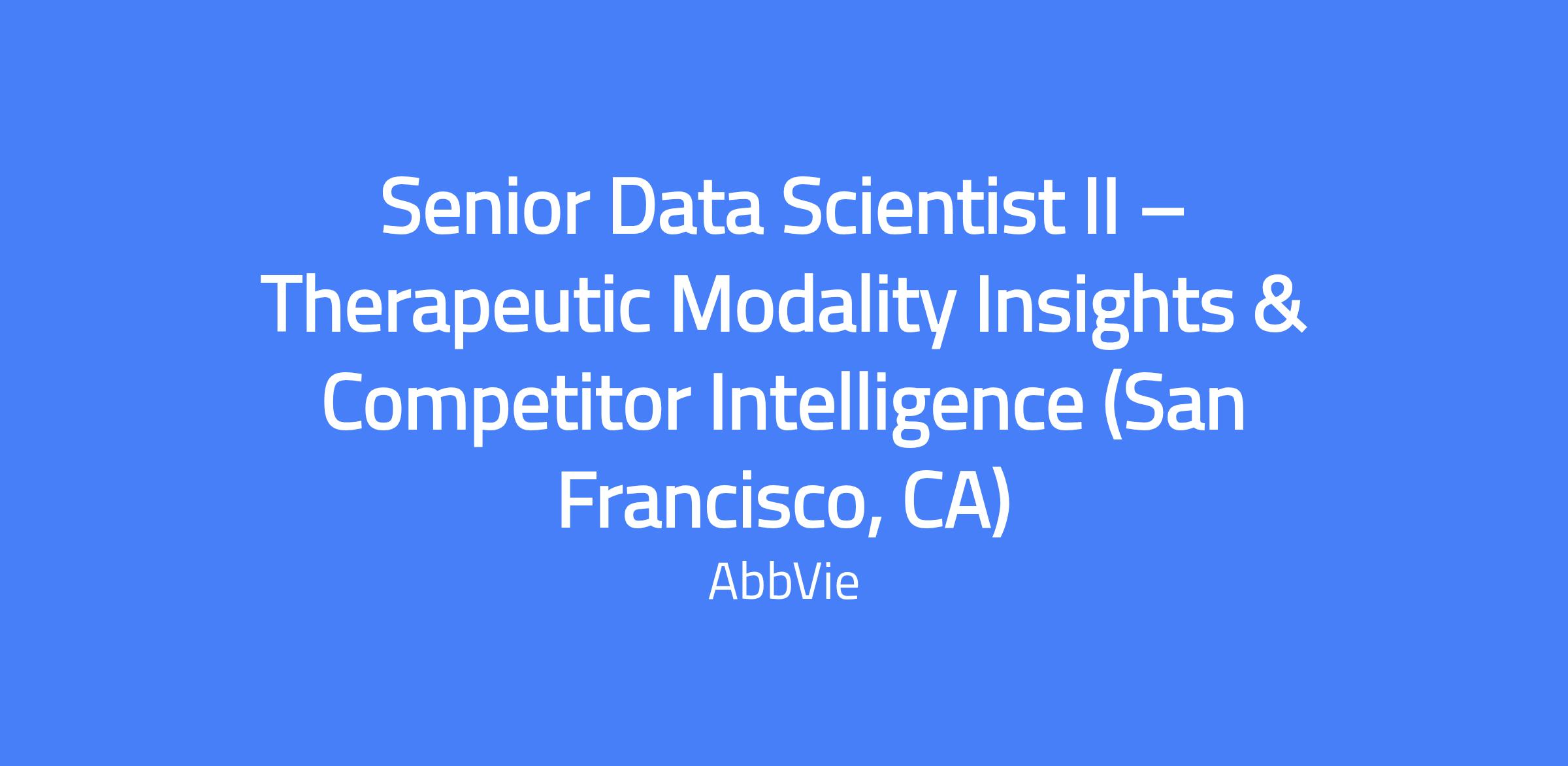 Senior Data Scientist II on AbbVie’s SPICE team, focused on Therapeutic Modality Knowledge & Intelligence Solutions. Leads development of AI-powered insights from literature, patents, news, and competitor intelligence to inform AbbVie’s R&D and corporate strategy. Combines deep scientific and technical expertise to design innovative knowledge solutions for emerging therapeutic modalities and GenAI-enabled analytics. Collaborates cross-functionally to deploy scalable, data-driven solutions that advance the pipeline and competitive positioning.