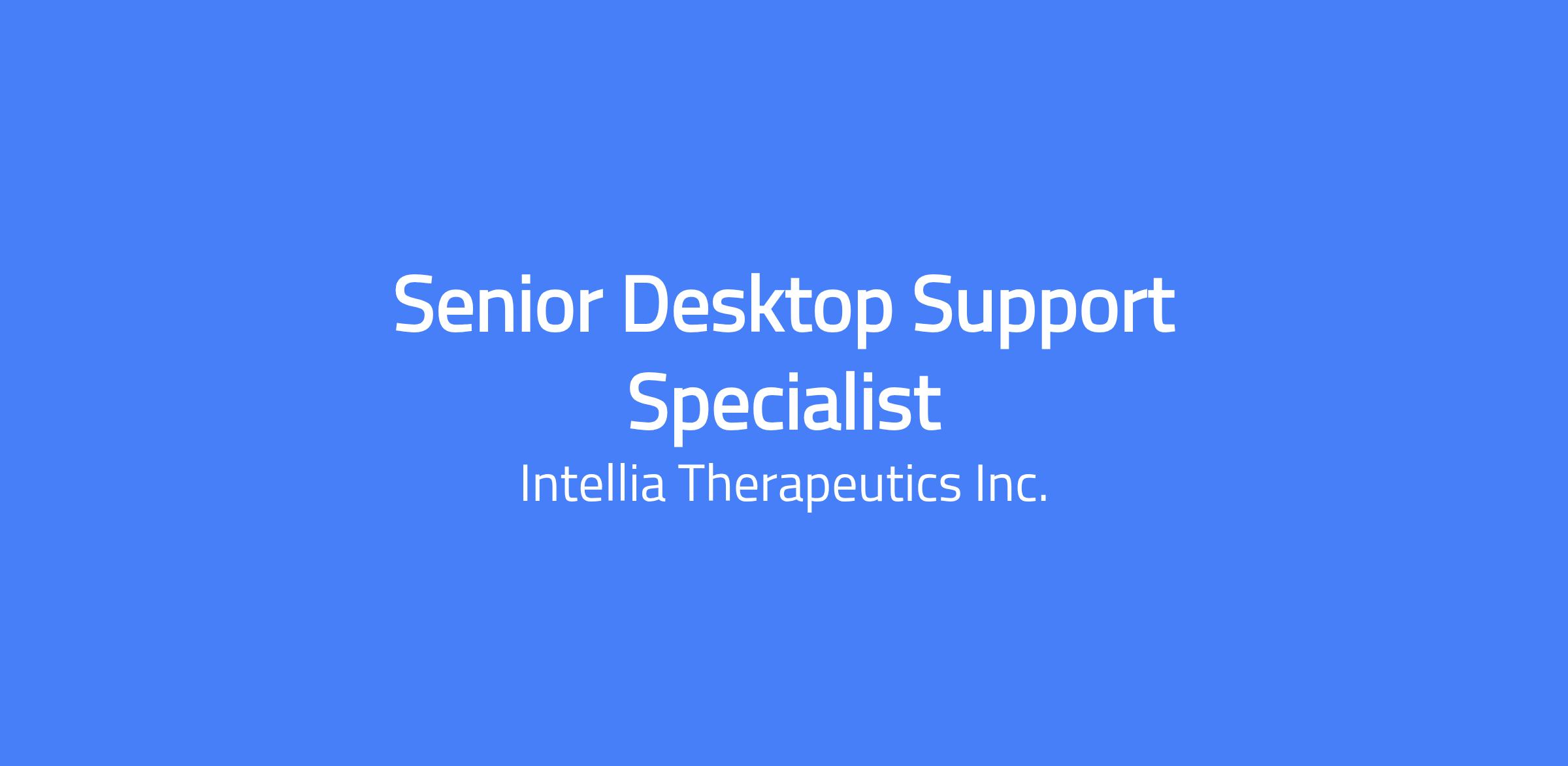 Why Join Intellia? Our mission is to develop curative genome editing treatments that can positively transform the lives of people living with severe and life-threatening diseases. Beyond our science, we live our four core values: One, Explore, Disrupt, Deliver and feel strongly that you can achieve more at Intellia. We have a single-minded determination to excel and succeed together. We believe in the power of curiosity and pushing boundaries. We welcome challenging thoughts and imagination to develop innovative solutions. And we know that patients are counting on us to make the promise a reality, so we must maintain high standards and get it done. We want all of our people to go beyond what is possible. We arenât constrained by typical end rails, and we arenât out to just âtreatâ people. Weâre all in this for something more. Weâre driven to cure and motivated for change. Just imagine the possibilities of what we can do together. How You Will Achieve More: This role directly reports to Intelliaâs Director, IT Operations and works closely with all areas of the organization as well as the Companyâs vendors. The Senior Desktop Support Specialist will provide L2/L3 escalation desktop support and problem resolution for Intelliaâs office and laboratory systems. The Senior Desktop Support Specialist will respond to break/fix requests for technical support and assistance for all workstations, laptops, peripherals and software applications. Responsibilities: Identify and remediate trends with ongoing issues and problems. Triage and assign tickets in the Helpdesk queue. Level 2/3 escalation for the desktop support team to troubleshoot complex tickets and issues. Place orders as needed and maintain hardware and software inventories. Provide escalation support for end-user support for computers running Windows 10/11 and Mac OS and ensure that break/fix tickets are resolved according to Intelliaâs defined Service Level Agreements. Perform software and hardware installations and upgrades as needed. Documents, tracks, and handles helpdesk calls and/or escalate problems when necessary. Responsible for weekly and monthly maintenance tasks on lab workstations and ensures critical data is being backed up and/or synchronized to network resources. Troubleshoot print, copy, and scanner issues, escalating calls to support vendors when necessary Supervisory Responsibilities Recruit, interview, hire, and train new contingent workers in the team Oversee the daily workflow of the group and assign tickets and task/projects to the team Provide ongoing coaching, mentoring, and development for the contingent workers About You: Excellent verbal and written communication skills. Excellent interpersonal and customer service skills. Excellent customer service skills. Excellent organizational skills and attention to detail. Excellent time management skills with a proven ability to meet deadlines. Strong analytical and problem-solving skills. Ability to prioritize tasks and to delegate them when appropriate. Ability to function well in a high-paced and at times stressful environment. Must have experience in Windows 10/11, Office365, Entra ID, Microsoft Intune, Microsoft Teams and calling, Jamf and common antivirus tools Bachelorâs degree or equivalent experience 3-4 years of experience with Desktop support. Experience in Life Sciences industry a plus. Prolonged periods of sitting at a desk and working on a computer. Must be able to lift up to 20 pounds at times. Walk couple of miles between buildings #LI-JR1 #LI-Onsite EEOC Statement: Intellia believes in a diverse environment, and is committed to equal employment opportunity for all its employees and qualified applicants. We do not discriminate in recruitment, hiring, training, promotion or any other employment practices for reasons of race, color, religion, gender, national origin, age, sexual orientation, marital or veteran status, disability, or any other legally protected status. Intellia will make reasonable accommodations for qualified individuals with known disabilities, in accordance with applicable law. Applications are accepted on a rolling basis, and will continue to be accepted until the position is filled at which point the position will be taken down. The base salary for this position is expected to range between $80,703.00 - $98,637.00 USD per year. The salary offered is determined based on a range of factors including, but not limited to, relevant education and training, overall related experience, specialized, rare or in-demand skill sets, internal comparators and other business needs. Upon joining Intellia, your salary will be reviewed periodically and additional factors such as time in role and performance will be considered. Intellia may change the published salary range based on company and market factors. Additional compensation includes a performance-based annual cash bonus, a new hire equity grant, and eligibility to be considered for annual equity awards the value of which are determined annually at the Companyâs discretion. For more information about Intelliaâs benefits, please click here. At Intellia, we are committed to solving the complex challenges of making CRISPR/Cas9-based medicines a reality for patients suffering from genetic diseases and to create novel engineered cell therapies for immuno-oncological and autoimmune diseases.
