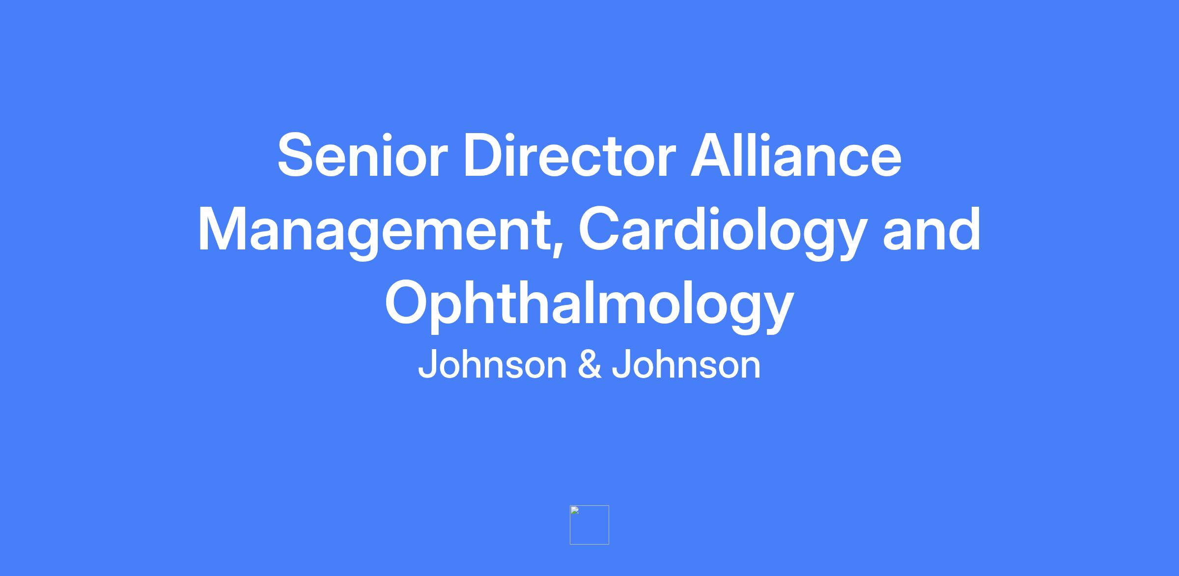 Senior Director of Alliance Management, Cardiopulmonary & Ophthalmology, based in Titusville, NJ, Raritan, NJ, or Springhouse, PA. Leads strategic alliances within the Cardiopulmonary and Ophthalmology area of the Innovative Medicine Group, driving partnership strategy, post-deal objectives, and day-to-day collaboration across internal and external stakeholders.