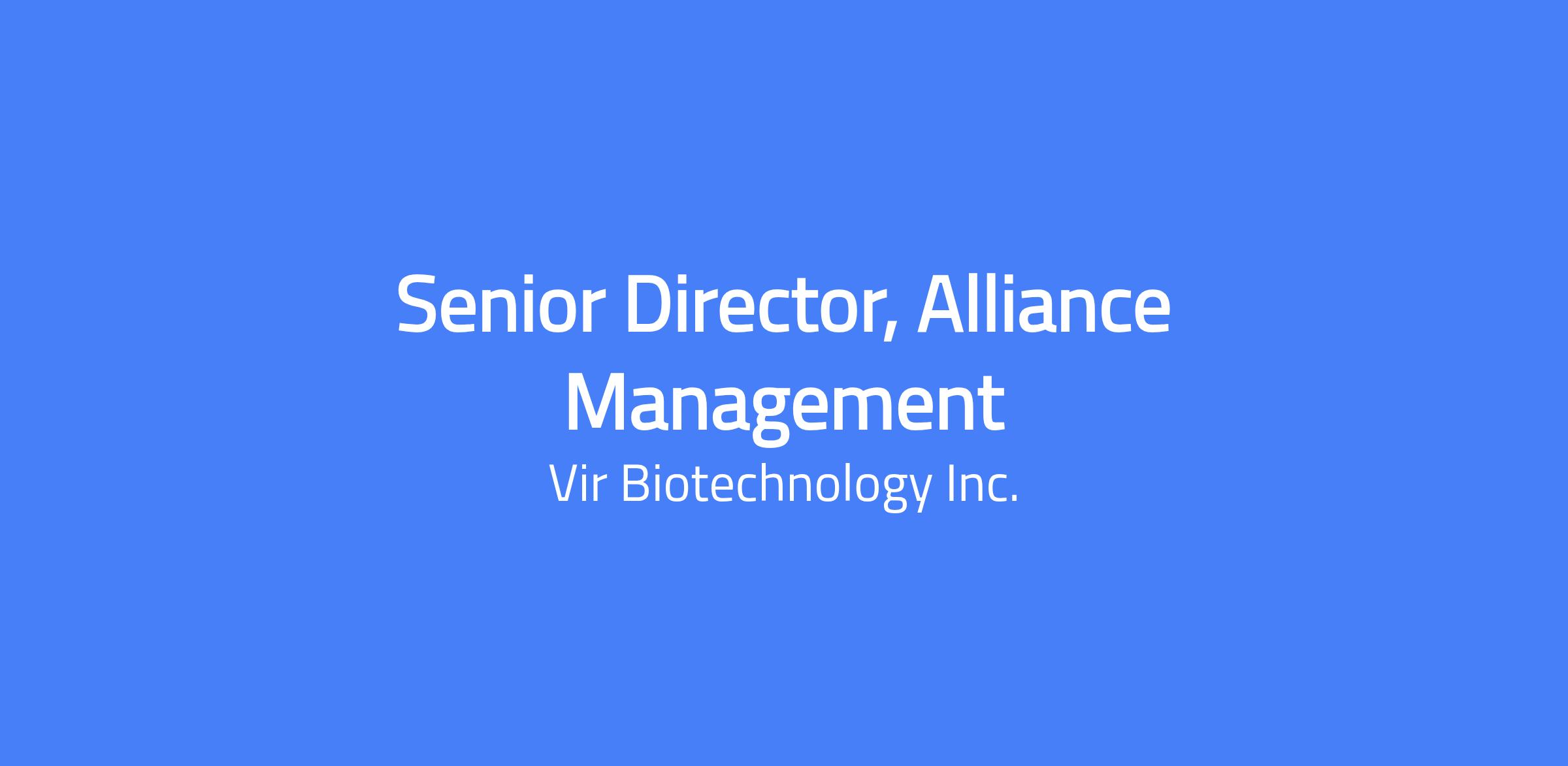Vir Bio is looking for a Senior Director, Alliance Management, to provide strategic leadership for a portfolio of high‑value external partnerships, including Vir Bio’s commercial hepatitis delta collaboration with Norgine across Europe, Australia, and New Zealand. This role operates with broad autonomy and accountability for alliance performance and value realization.