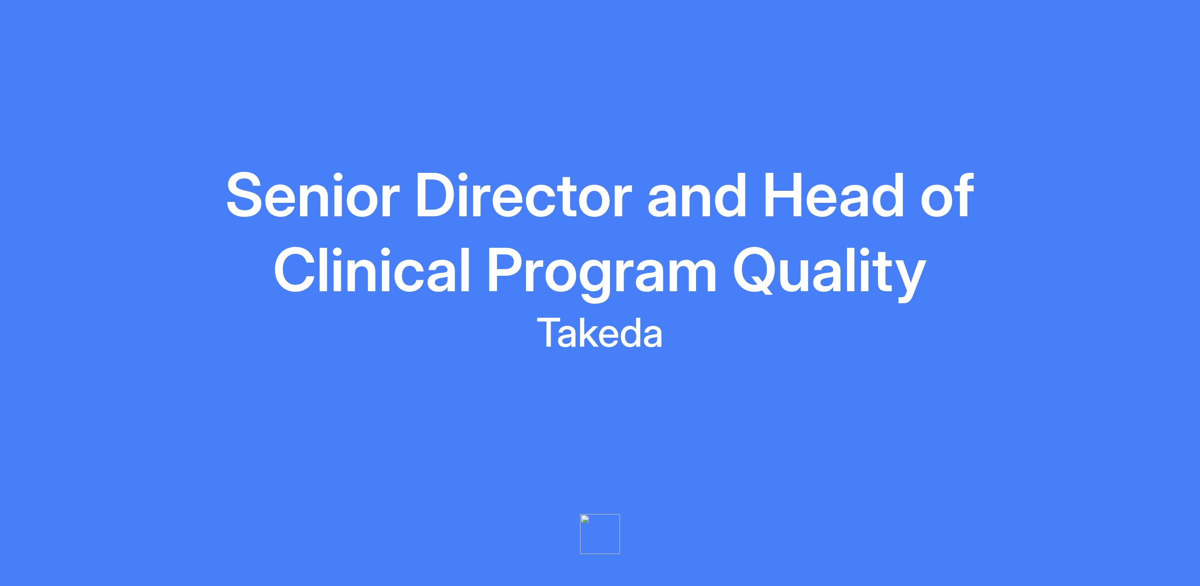 Senior Director and Head of Clinical Program Quality, leading Takeda's global Clinical Programs Quality organization, providing strategic leadership and oversight of clinical development programs, and ensuring risk-based quality interventions and audits are performed for timely mitigations.