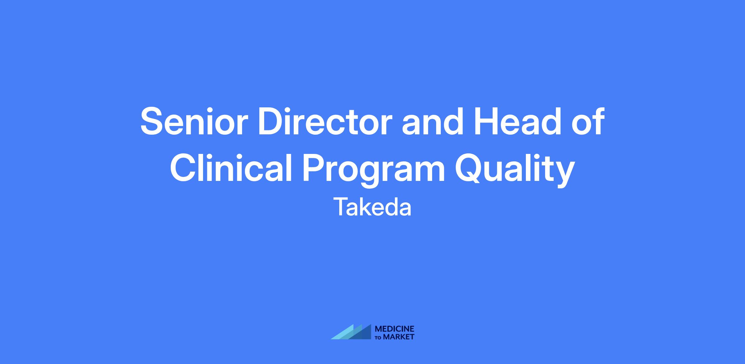 Senior Director and Head of Clinical Program Quality, leading Takeda's global Clinical Programs Quality organization, providing strategic leadership and oversight of clinical development programs, and ensuring risk-based quality interventions and audits are performed for timely mitigations.
