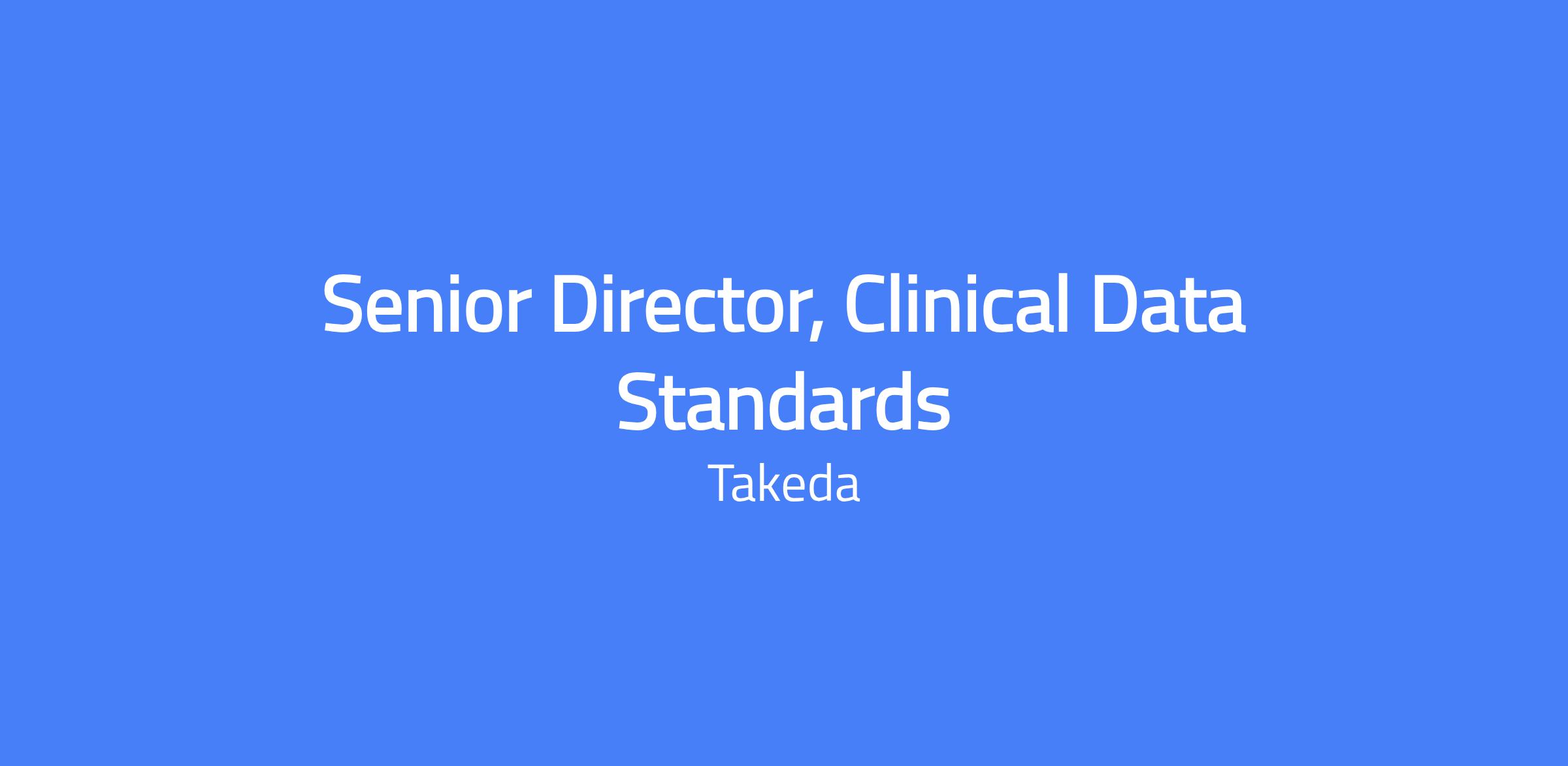 Senior Director, Clinical Data Standards. This role is remote and reports to the Vice President, Clinical Data Operations & Standards. The position leads global data standards strategy, governance, and interoperability across the clinical data continuum, partnering with Clinical Data Strategy & Operations Leaders, TAU Leaders, and vendor/partners to advance standards initiatives and support regulatory expectations.