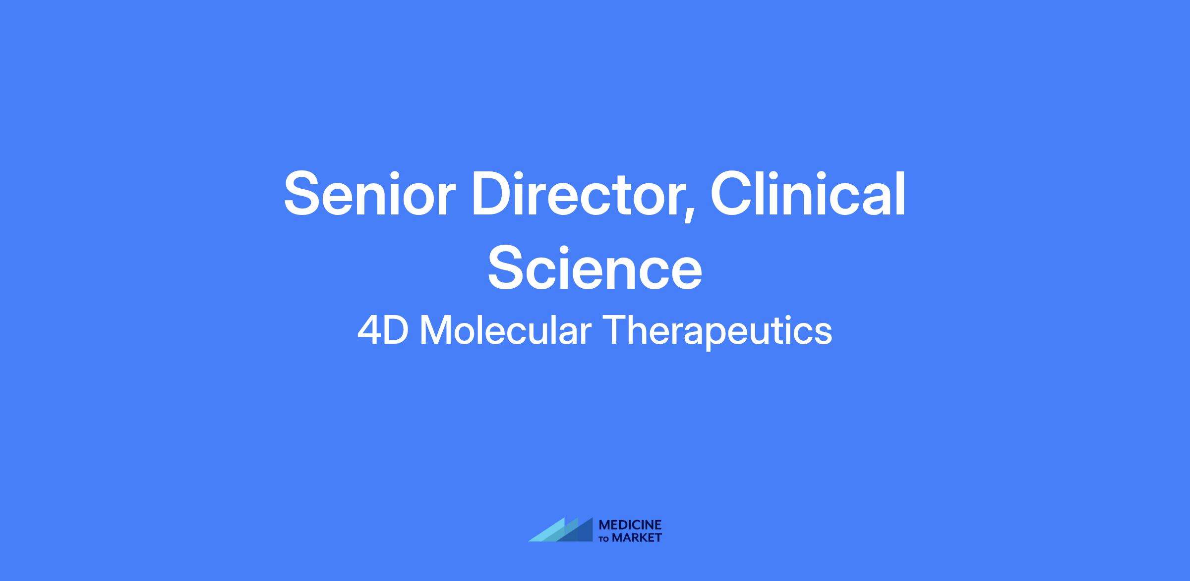 Senior Director, Clinical Science responsible for facilitating successful advancement of ophthalmology gene therapy programs, supporting clinical and scientific aspects of assigned clinical programs.