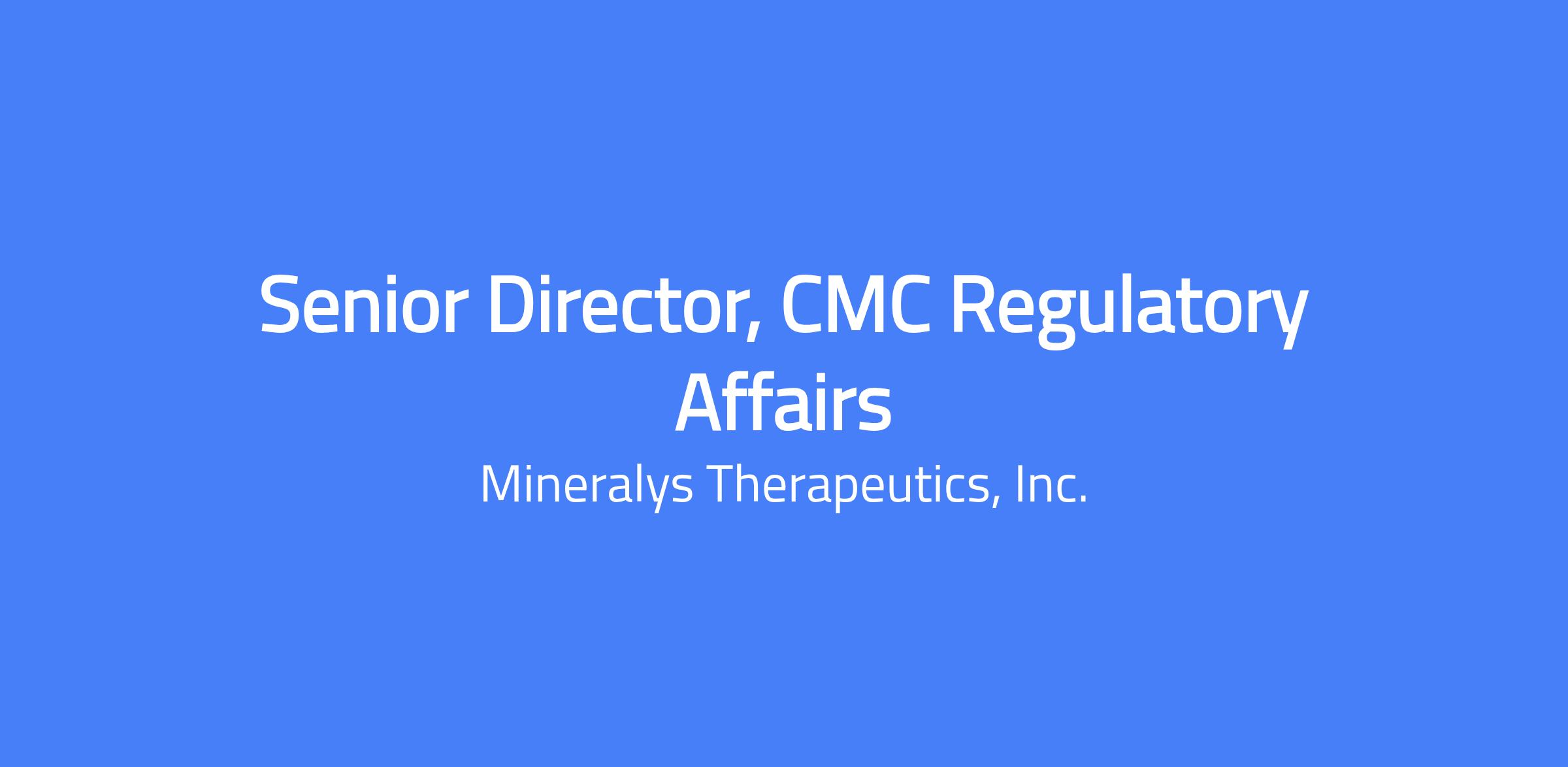 Senior Director, CMC Regulatory Affairs leads the global CMC regulatory strategy to support clinical development, registration, commercialization, and lifecycle management of Mineralys products. The role provides strategic and operational leadership for all CMC regulatory activities, guiding cross-functional decision-making, ensuring compliant CMC documentation, and producing high-quality submissions that meet global regulatory requirements. The incumbent partners closely with CMC, Quality, and external partners to align documentation, regulatory strategy, and lifecycle planning.