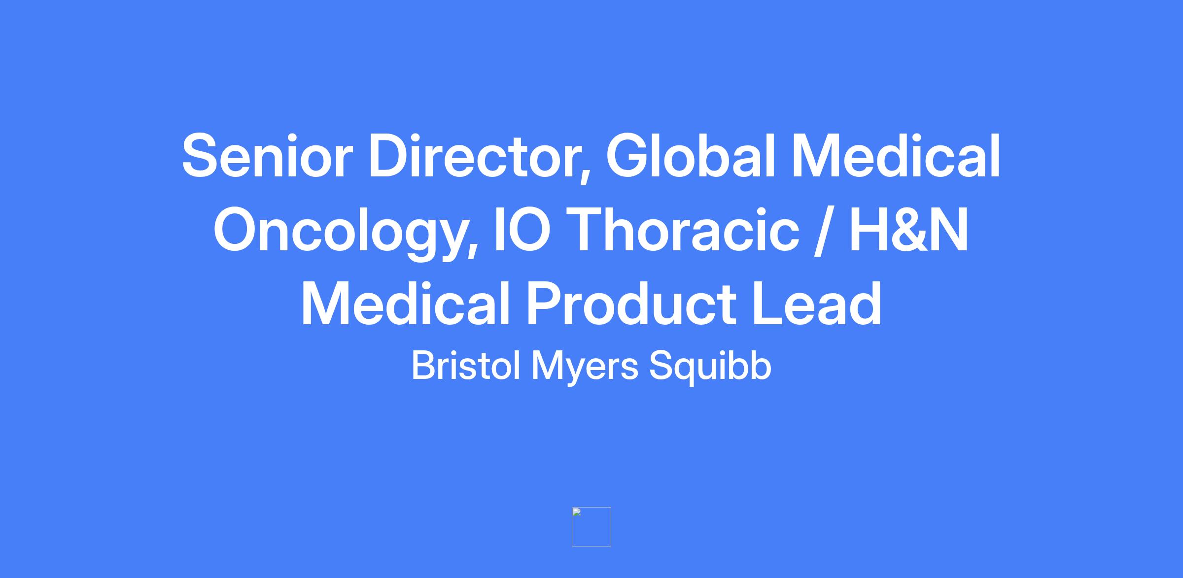 Senior Director, Global Medical Oncology, IO Thoracic / H&N Medical Product Lead. Develops and executes the WW & US medical strategy for thoracic and H&N portfolios, leads cross-functional teams, and oversees medical affairs activities for multiple assets.