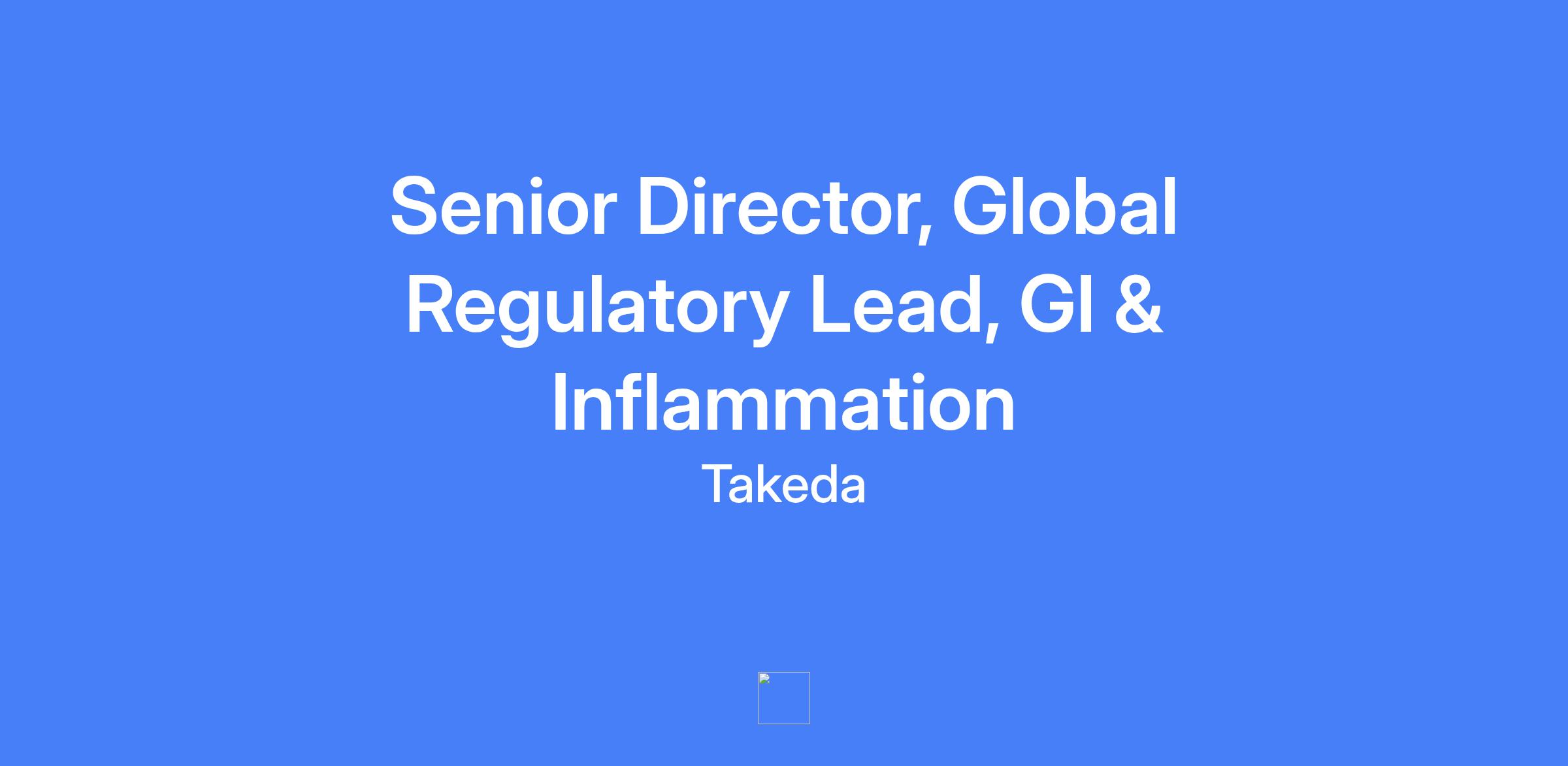 Senior Director, Global Regulatory Lead, GI & Inflammation. Defines, develops and leads global regulatory strategies to maximize regulatory success across complex programs; provides strategic and tactical guidance to ensure timely and compliant development and maintenance of programs; leads and develops a team of global regulatory leads and collaborates with regional counterparts.